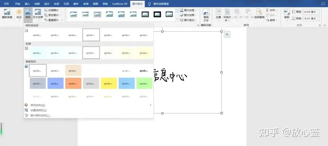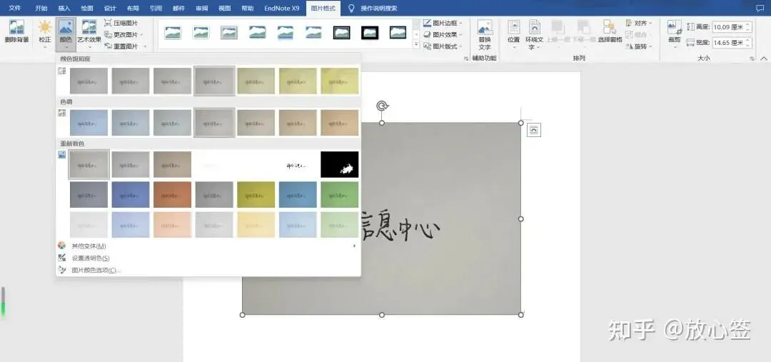首先选中刚刚插入的图片,点击菜单「格式」-「颜色」-「黑白」。