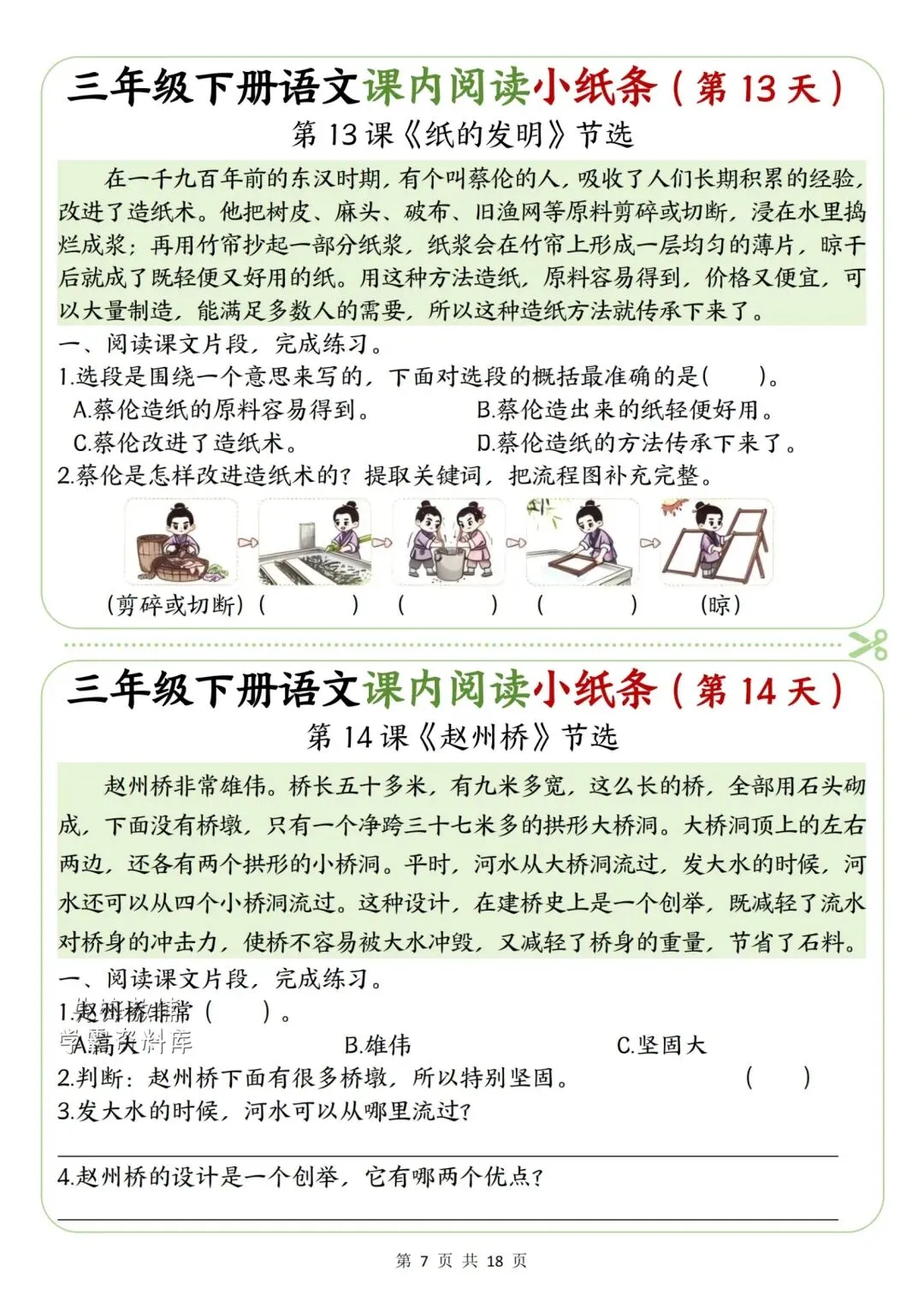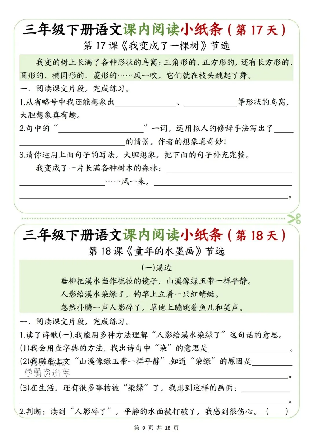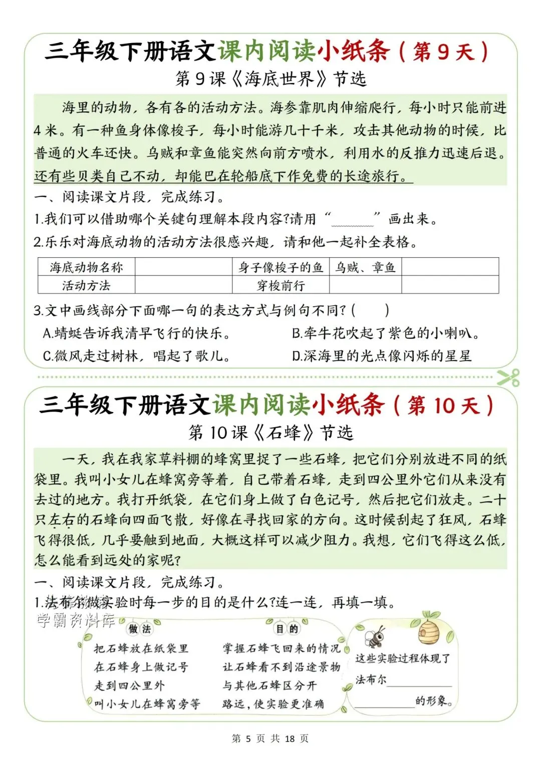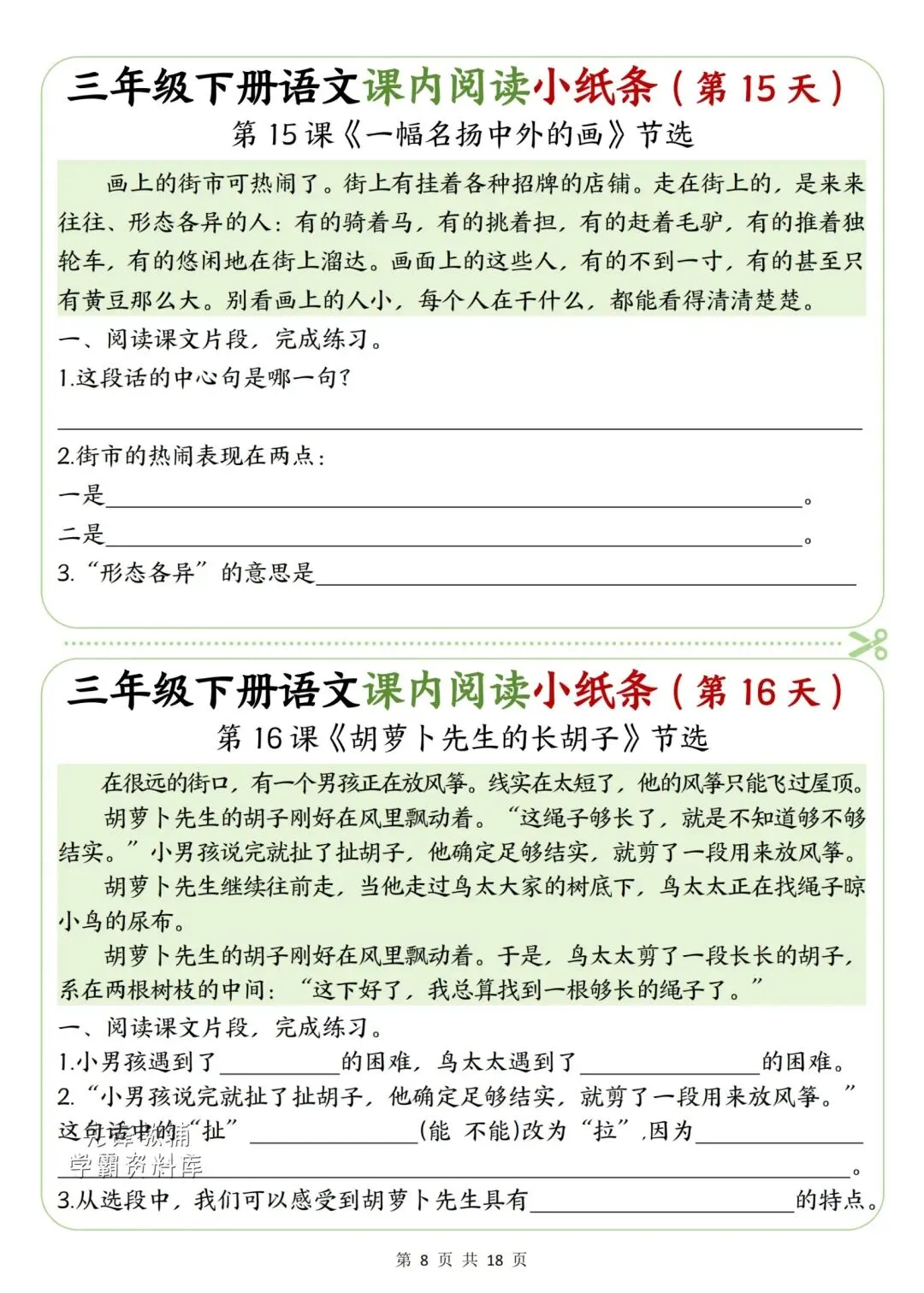 新版三年级下册语文课内阅读小纸条高清电子版可打印