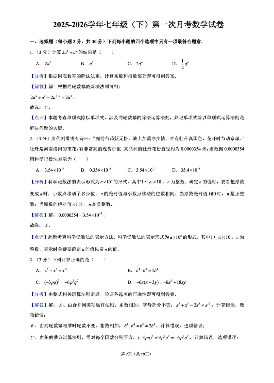 2026年春新版七年级下册北师大版数学第一次月考试卷(真题卷)共2套含答案,电子版可打印