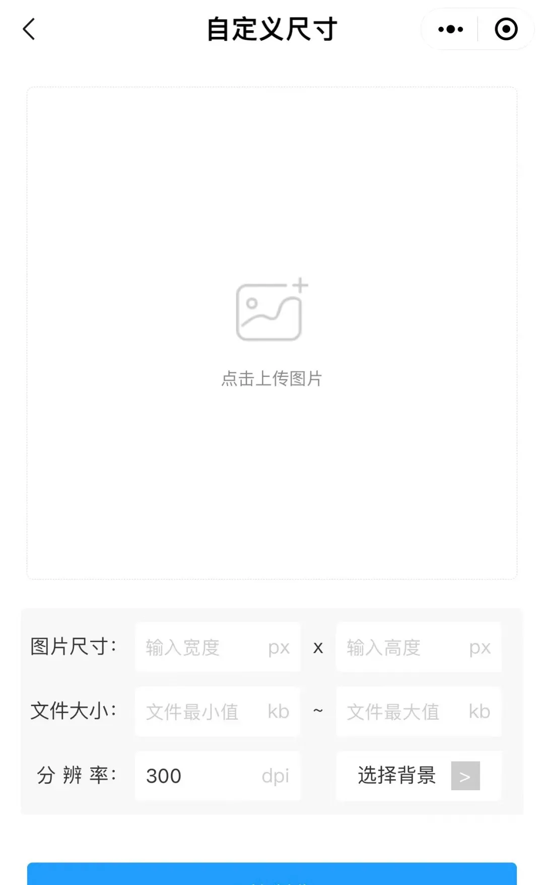 点击主页面“自定义尺寸”去制作,上传照片,输入自己想要的照片尺寸、文件大小、分辨率,例如: