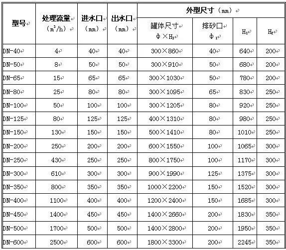 旋流除砂器规格型号一览表