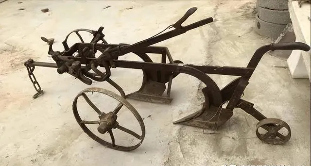 这个双铧犁要是没见过,种地的老把式就会感觉少点意思,铁架子配两只大轮子,牛拉着犁地,一趟一趟翻出新泥,父辈讲那玩意真沉,一头牛都喘不过气来,力气小根本动不了,后来有了拖拉机,双铧犁在院里赫然一放,一堆锈迹见证了年代变迁。