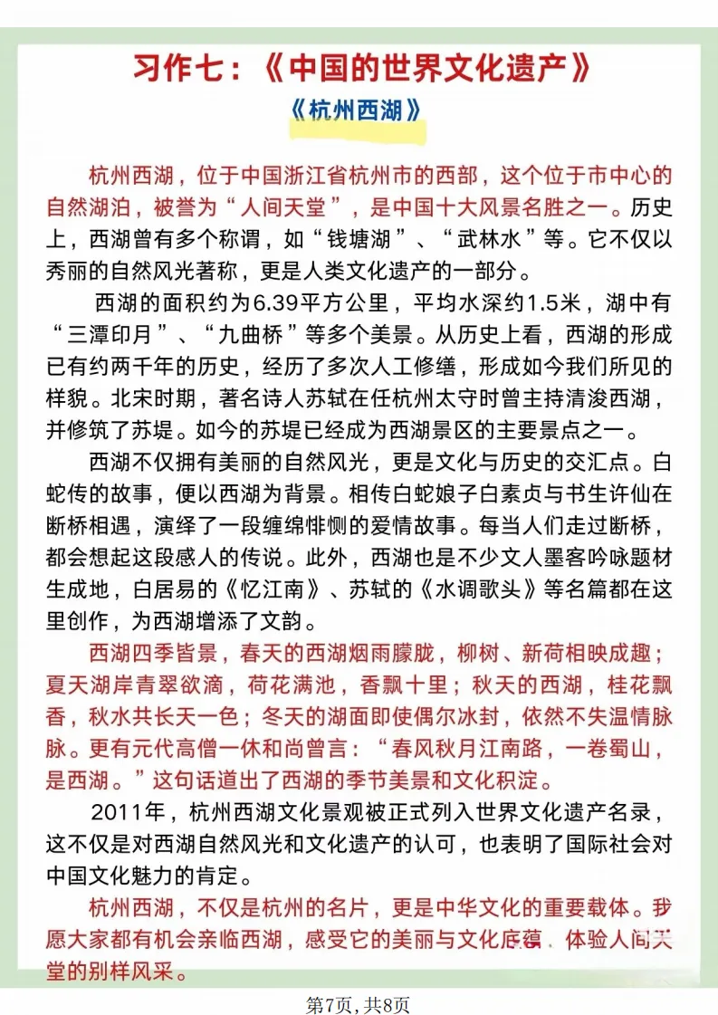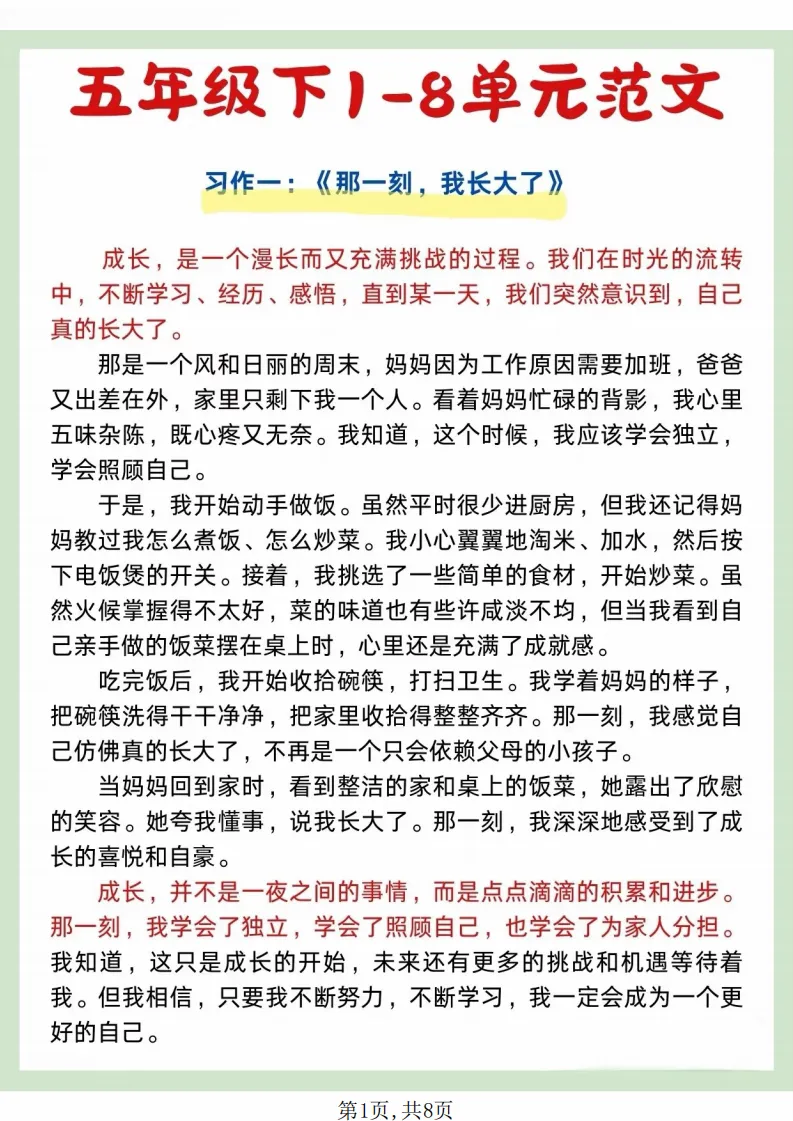 🌸今天给家长分享的是:26春五年级下册语文《1-8单元范文》|电子版可打印