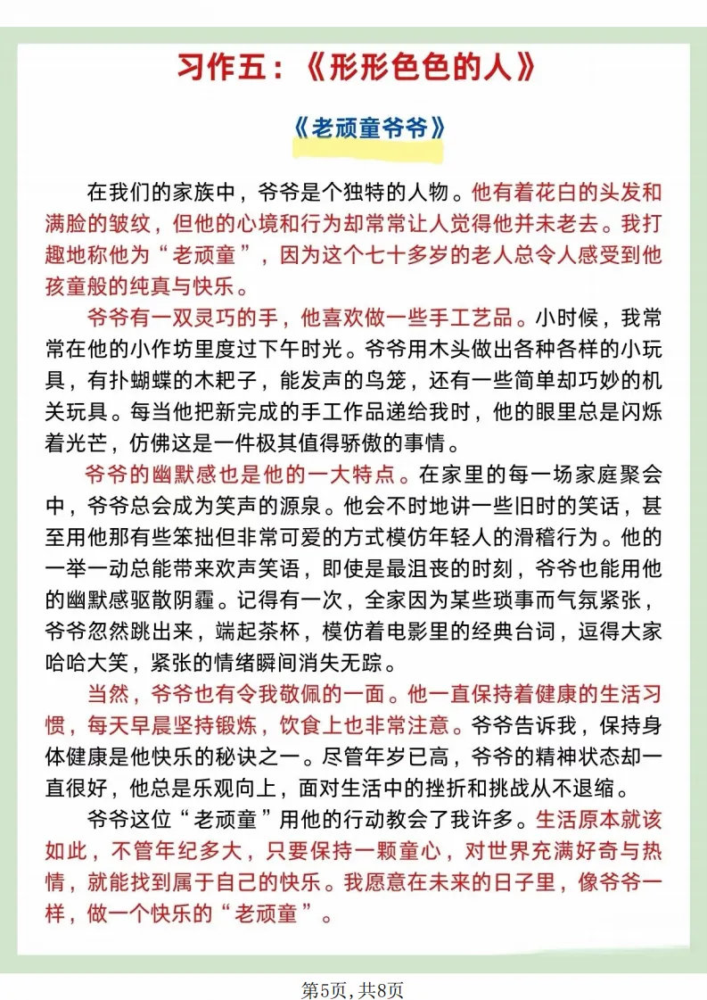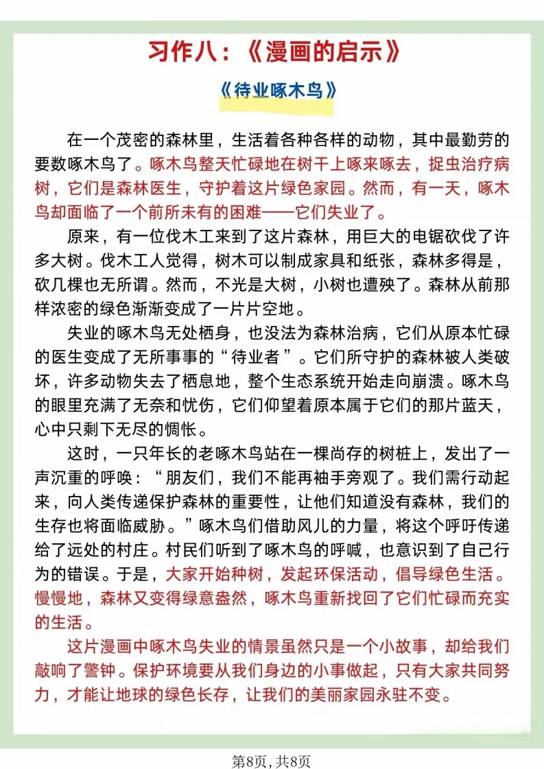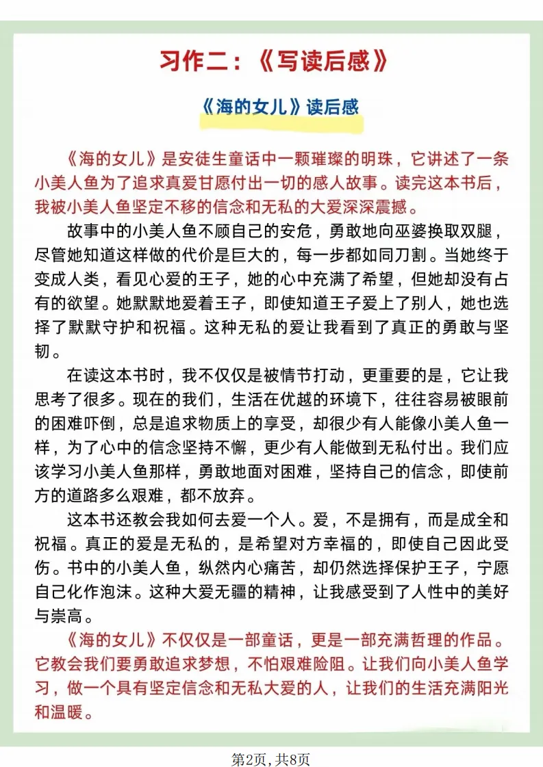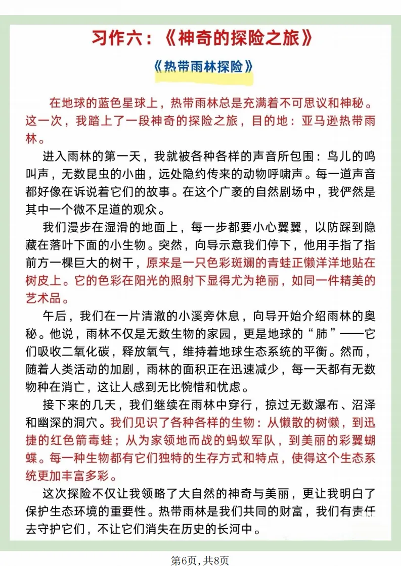 26春五年级下册语文《1-8单元范文》|电子版可打印