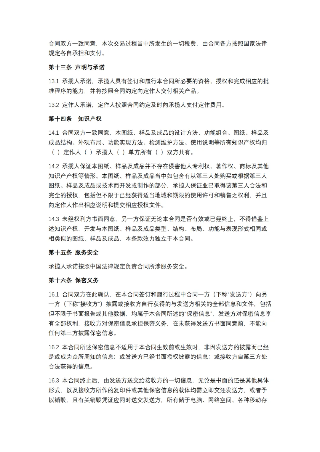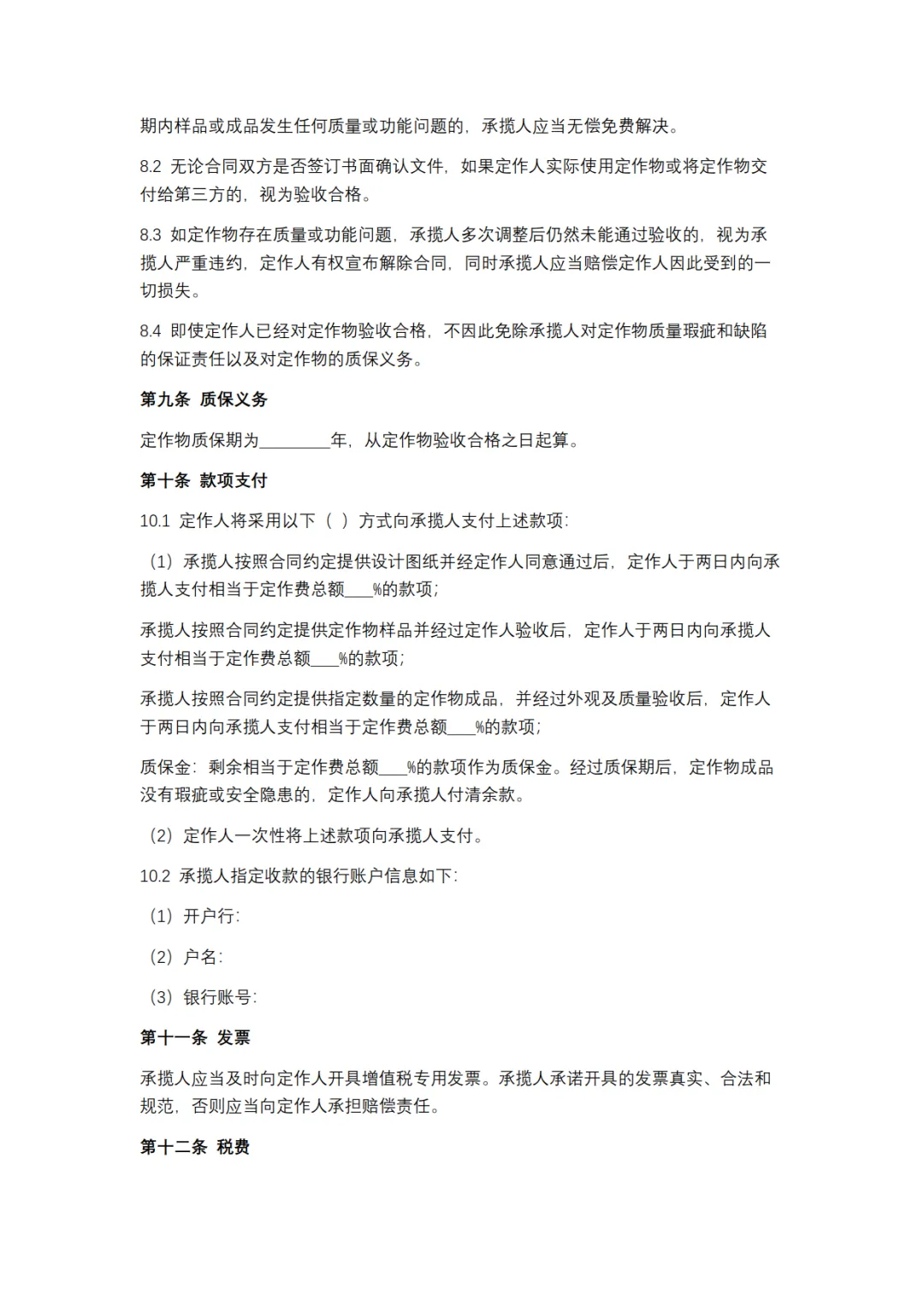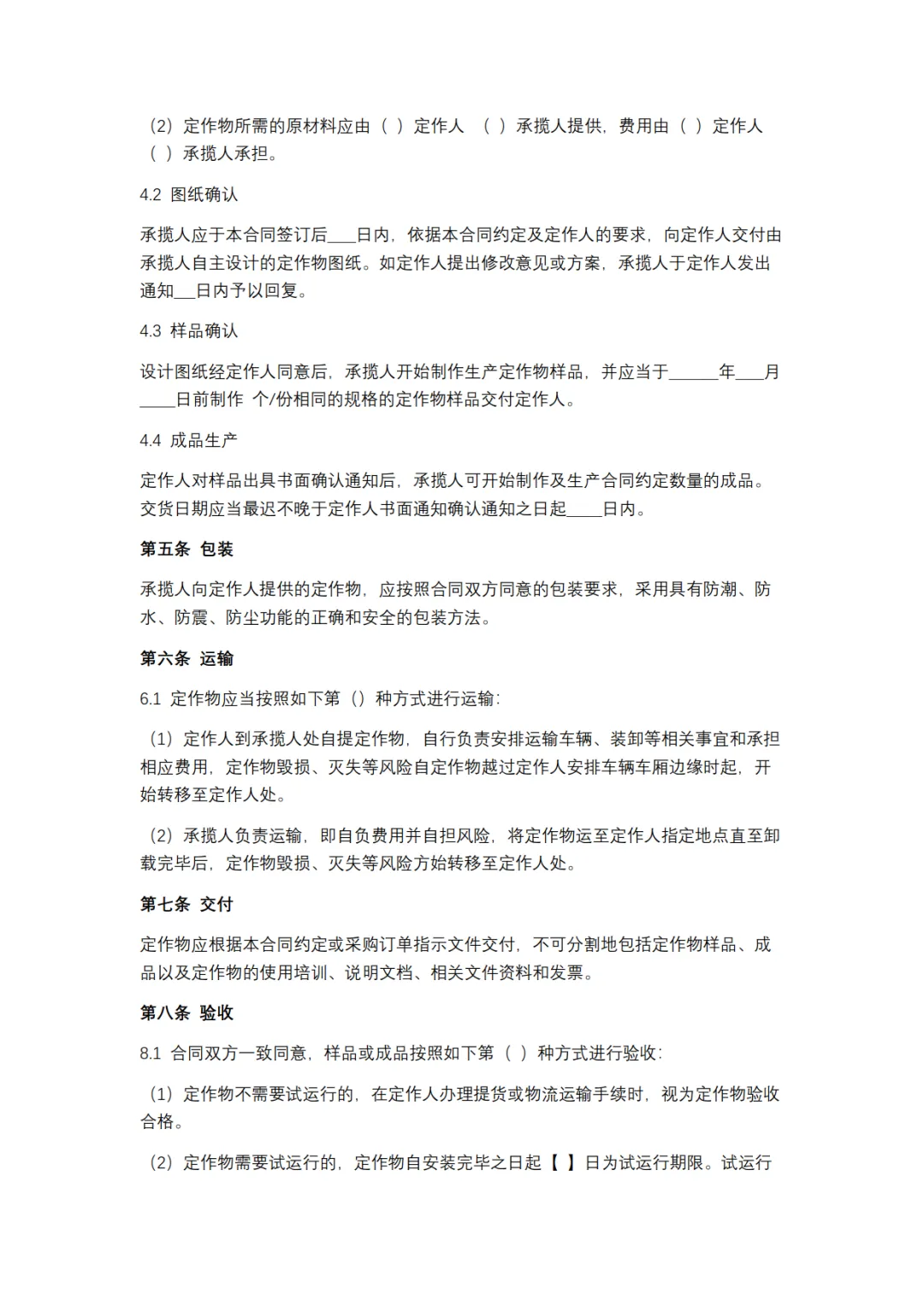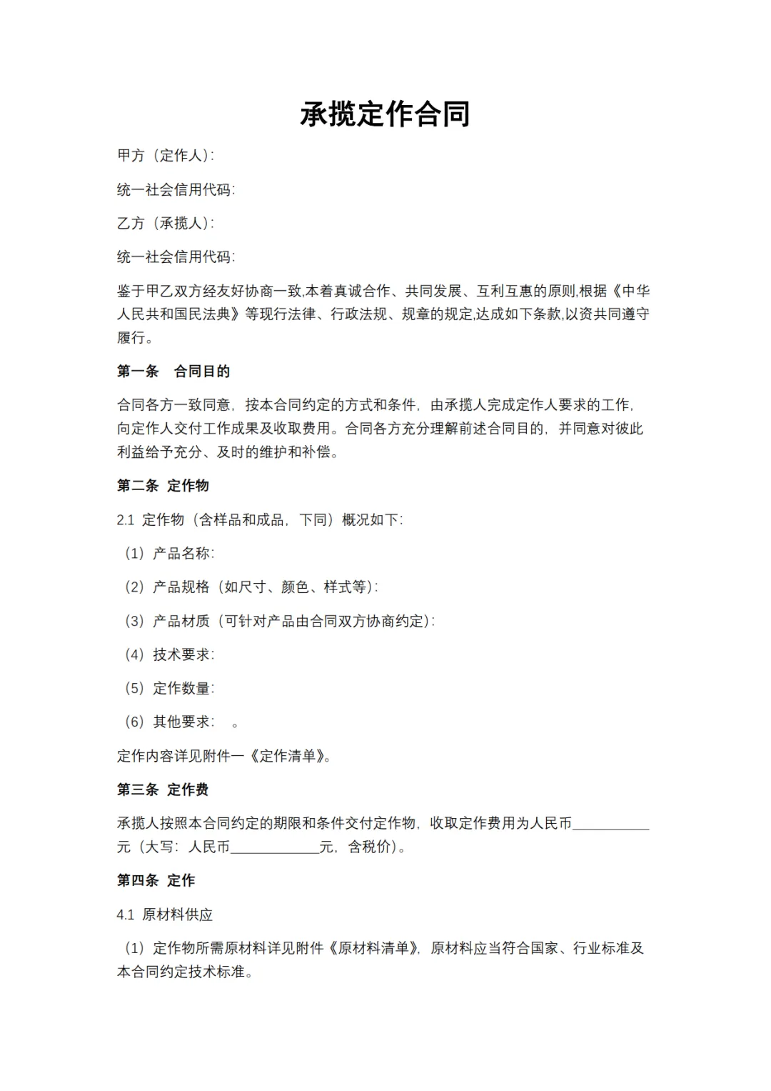 承揽定作合同模板,WORD文档电子版,可免费下载打印