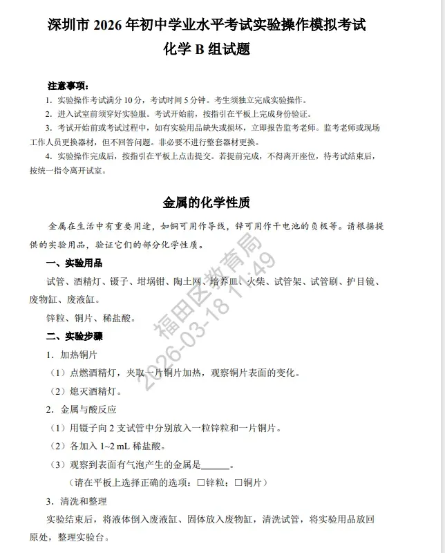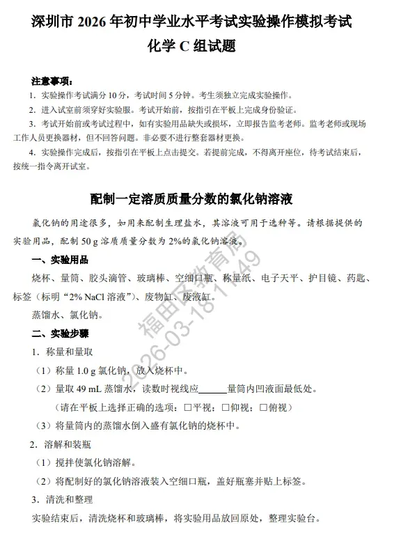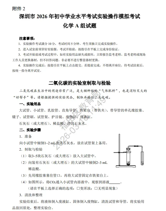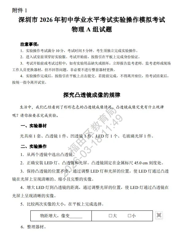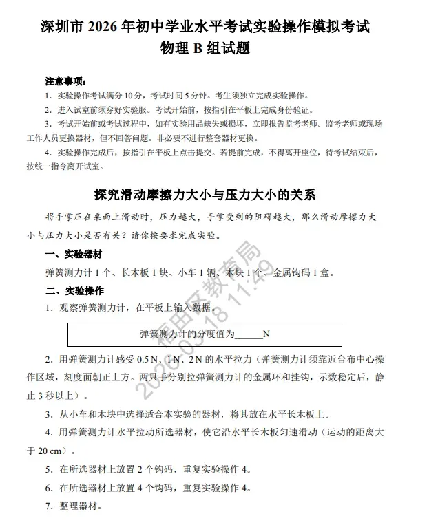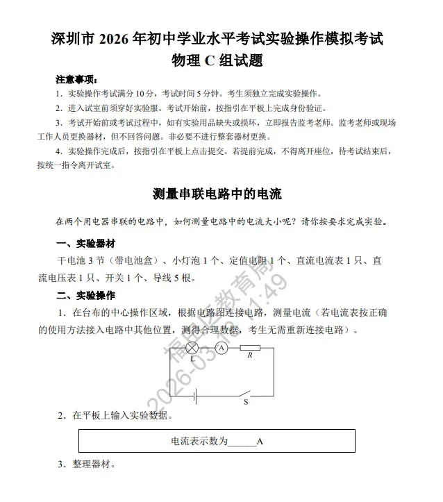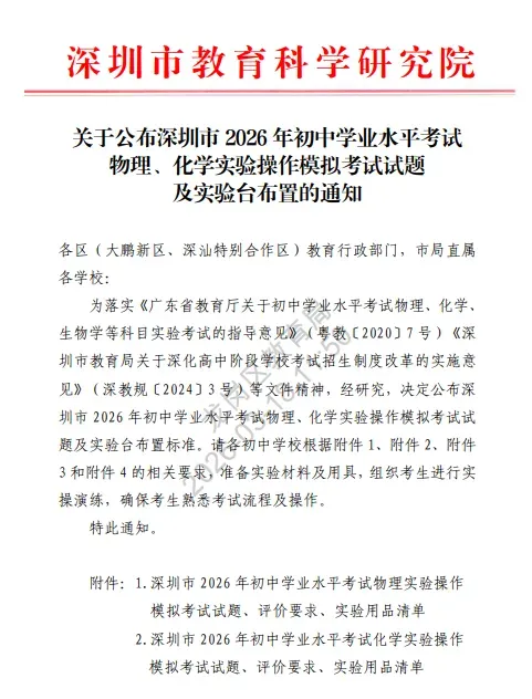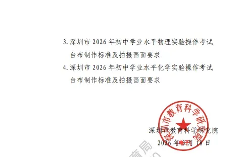 2026深圳中考理化实验操作考试详细说明(附视频演示及评价标准) 考试时间:2026年5月23 日-24日 考试时长:每科5分钟(3组实验中选一组) 2026年深圳市理化实验操作考试(物理)说明 已关注 关注 重播 分享 赞 视频详情 已关注 关注 重播 分享 赞 视频详情 已关注 关注 重播 分享 赞 视频详情 2026年深圳市理化实验操作考试(化学)说明 已关注 关注 重播 分享 赞 视频详情 已关注 关注 重播 分享 赞 视频详情 已关注 关注 重播 分享 赞 视频详情 特别说明: 以上内容仅作参考,实际考试请以官方或学校印发文件为准。 2026中考冲刺课程 点击下方图片了解 2026深圳初三中考全日制集训班招生:300–500分生专属提分方案