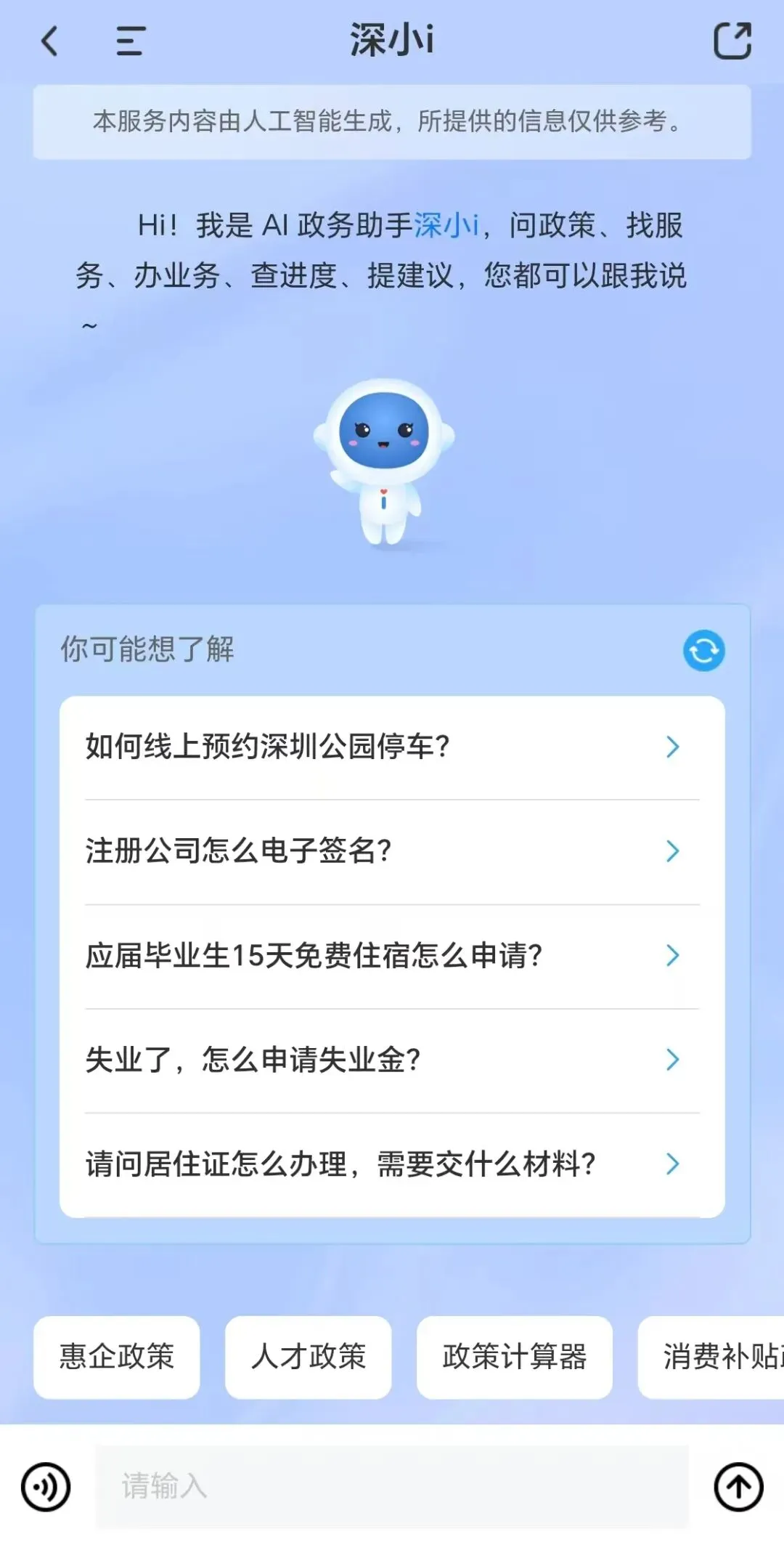 百万市民体验过的AI政务助手“深小i”今年拟实现200个高频事项“边聊边办”