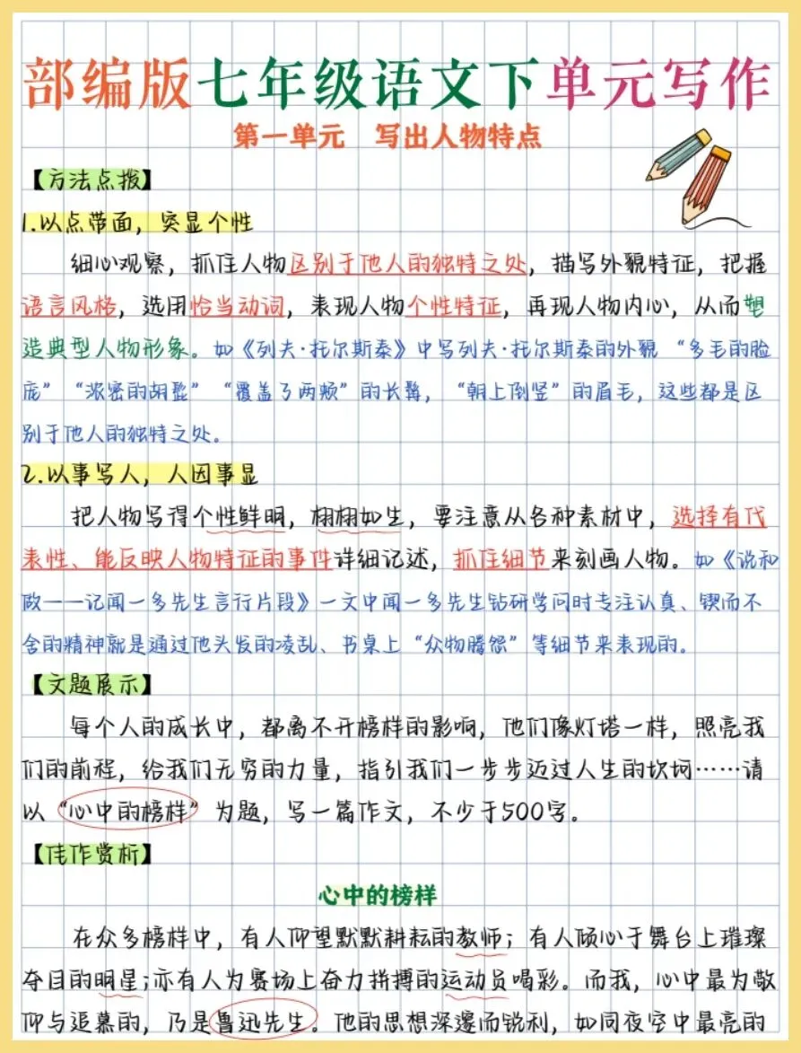 知识总结丨26新七下语文单元写作(电子版可打印)