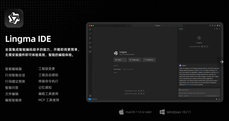Lingma(灵码)是阿里云 基于 通义千问(Qwen)大模型系列 打造的,于2024年下旬推出的 AI 编程插件,以 IDE 插件为核心形态,支持行级补全(<300ms)、MCP工具调用、自然语言生成函数、单元测试自动生成(覆盖率目标 80%+)、漏洞检测增强(结合 JVM Profiling Toolkit)等这类的能力。支持 VPC 私有网络调用、日志审计等。Web 版集成于阿里云控制台,有点鸡肋,不如直接访问千问网页版。