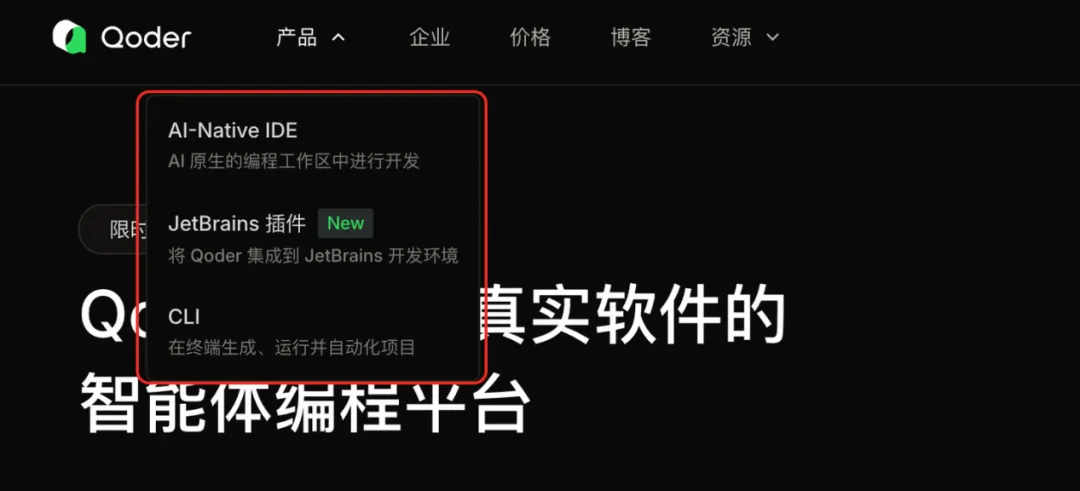 主力形态是 AI-Native 原生 IDE;在 CLI 热潮推动下,团队于 2025 年 10 月 快速推出了 Qoder CLI,能力基本对齐 IDE,并无缝集成于本地工作流:默认支持 Git,原生适配 Shell,并可轻松集成到 CI/CD 流水线中。随后11月又上线了 官方 IDE 插件(目前仅支持 JetBrains 系列,VS Code 尚未覆盖),不过插件功能是 IDE 的子集(比如不支持 Quest Mode)