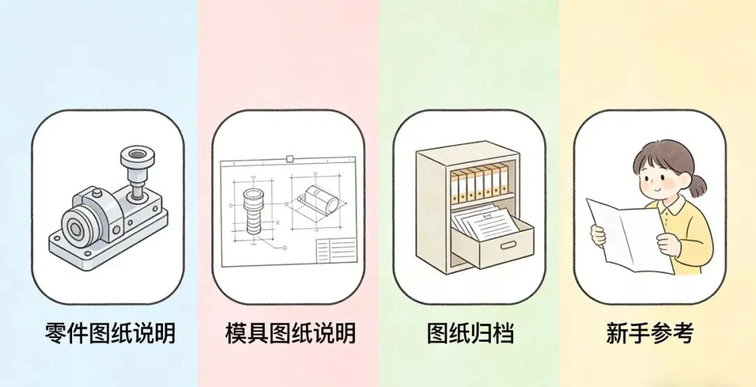 图纸说明不规范总被打回?AI 给你标准话术 做结构工程师,画完图纸不算完, 图纸说明写不好,照样被领导打回重写。 要么表述模糊、逻辑混乱,生产看不懂; 要么参数缺失、规范不符,审核通不过; 要么术语不标准、格式不统一,反复修改耗时间。 很多工程师宁愿多画一张图,也不愿写一段图纸说明, 不是不会写,是怕写不规范,白费功夫。 今天直接给你工程师专属AI模板, 不用抠话术、不用查规范, AI一键生成标准图纸说明,一次通过不返工。 适用场景 结构零件、装配体图纸说明撰写 模具、工装夹具图纸技术说明 图纸归档、生产对接、审核提交 新手工程师规范话术参考、避免踩坑 万能AI提示词(直接复制,替换对应信息) 💡 我是结构工程师,需要撰写一份规范标准的图纸说明,用于CAD图纸配套归档和生产对接,要求语言专业、术语标准、逻辑清晰,符合制造业技术文档规范,包含以下核心模块: 1. 产品/零件名称与用途 2. 核心参数(尺寸、材质、公差要求) 3. 设计要点与结构说明 4. 装配/加工工艺要求 5. 检验与验收标准 请根据以下图纸信息,生成完整可直接使用的图纸说明: 产品/零件名称: 核心参数(尺寸/材质/公差): 设计与工艺要点: 填写小技巧(零失误) 不用写完整段落,只填核心信息,AI自动润色成规范话术 尺寸、公差、材质务必填写精准,贴合图纸实际要求 需突出防水、耐磨等特殊要求,可补充指令:重点说明XX特殊设计要求 需简化版本,可补充指令:精简话术,保留核心参数与工艺要求 生成后微调步骤 核对参数、术语是否与图纸一致,避免出现偏差 补充图纸编号、编制人、审核人、日期等基础信息 复制到图纸配套文档,即可归档或对接生产、审核 图纸说明的核心是“清晰、规范、无歧义”, 不用追求华丽话术,标准、准确才是关键。 用AI搞定标准话术,告别反复修改,把精力留给图纸设计本身。 👉 我是老K,专注帮工程师用AI少加班、少挨骂。 关注我,下期持续更新工程师AI高效办公干货。