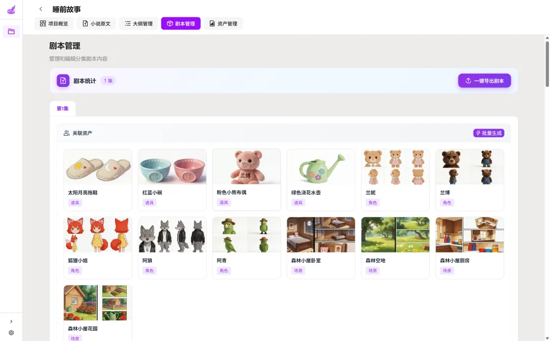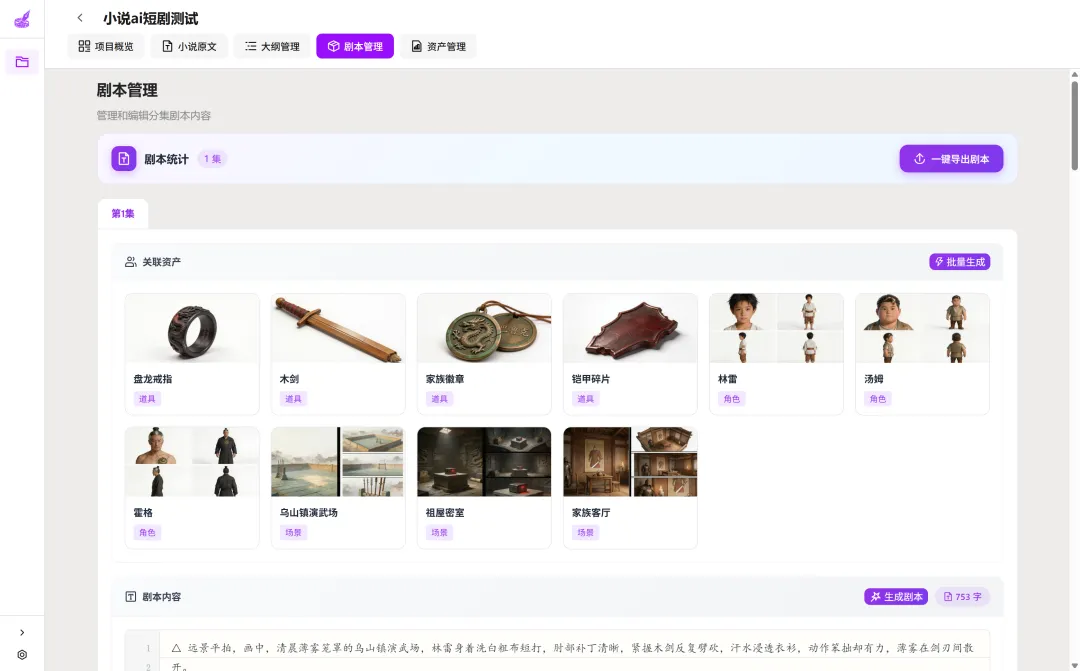这是它最碾压同类工具的地方 —— 真正做到了「输入一个小说文本,输出一条完整成片」,全程零手动操作。
