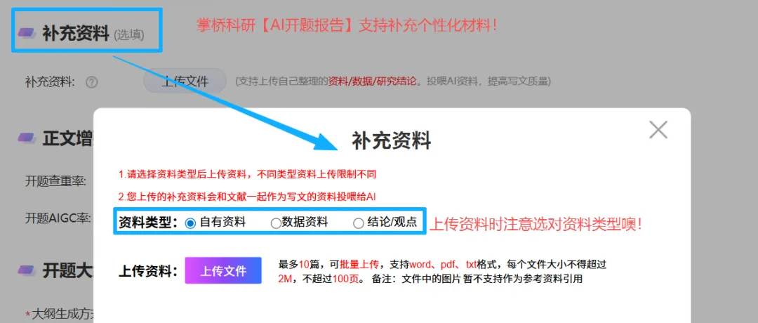 最让我放心的就是它支持上传咱们自己的研究数据和文献。