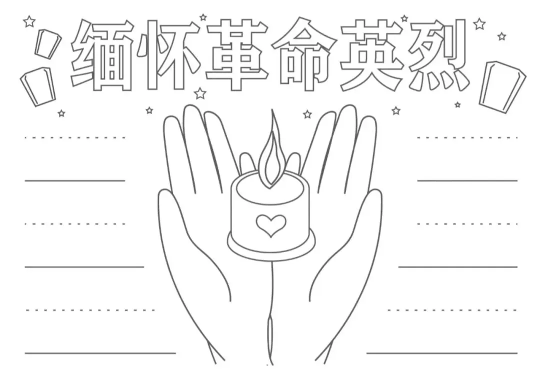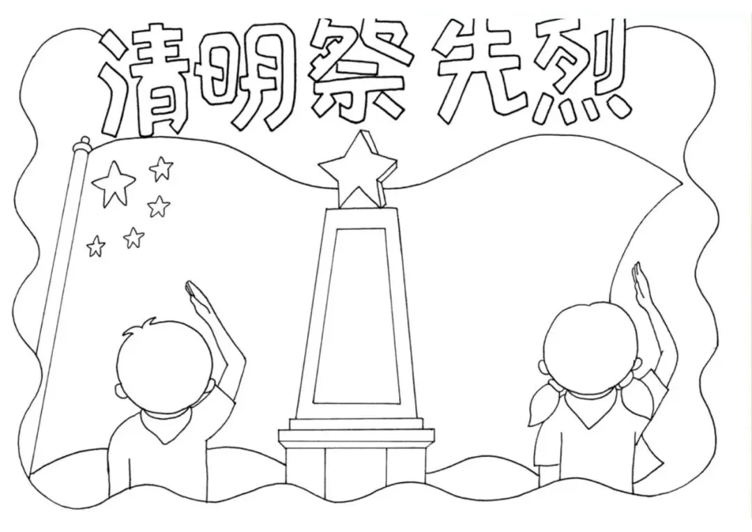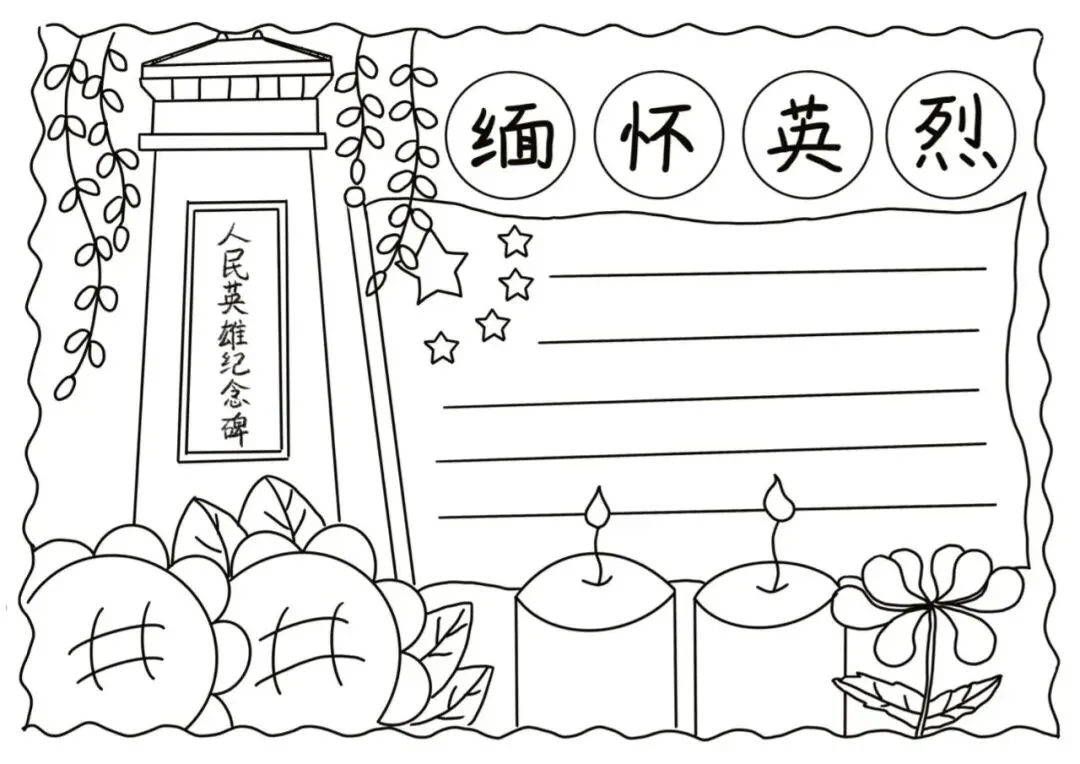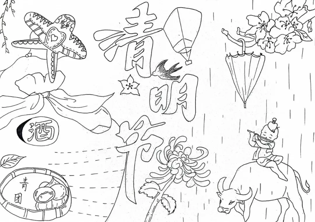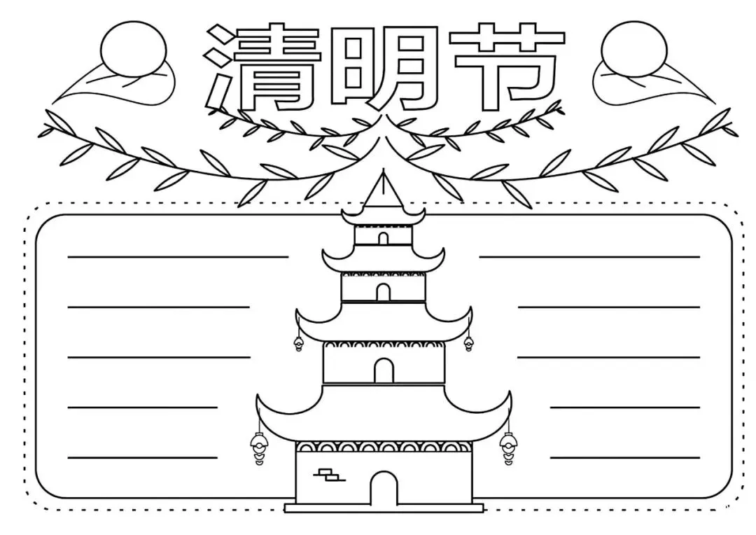 清明节手抄报大全,黑白线稿,可打印