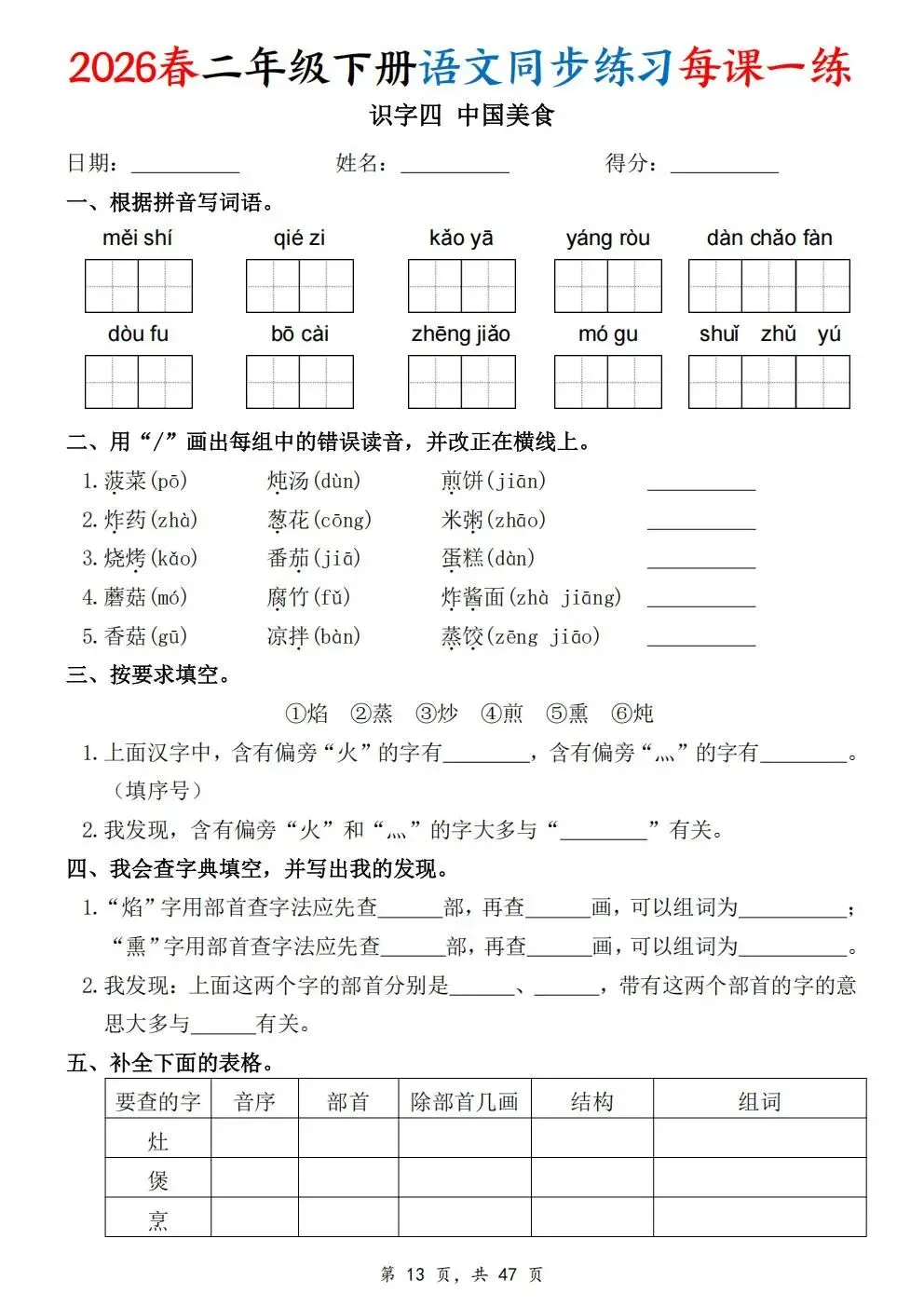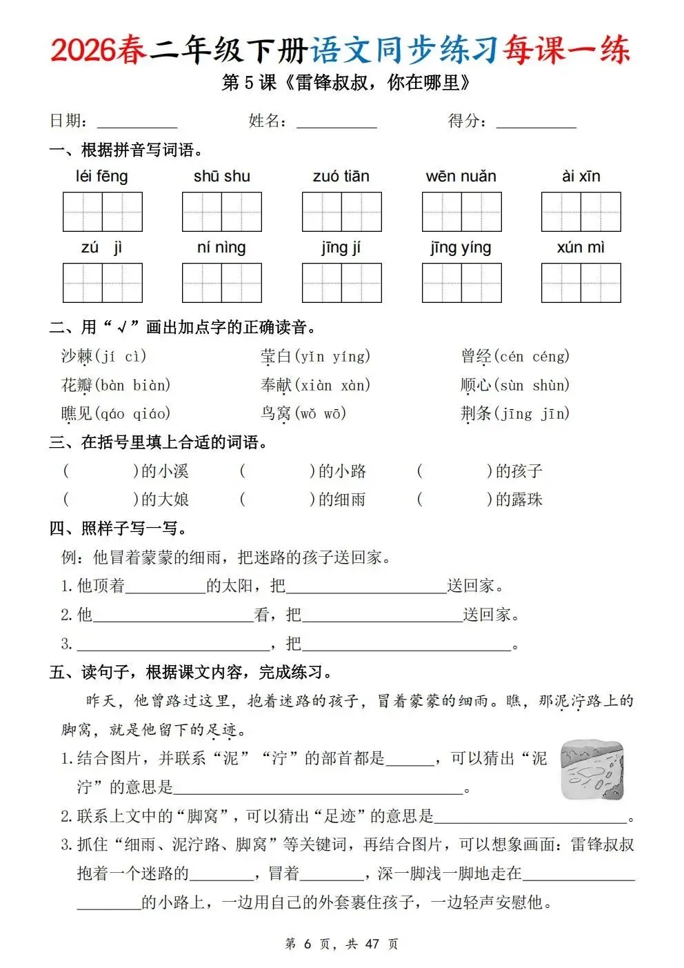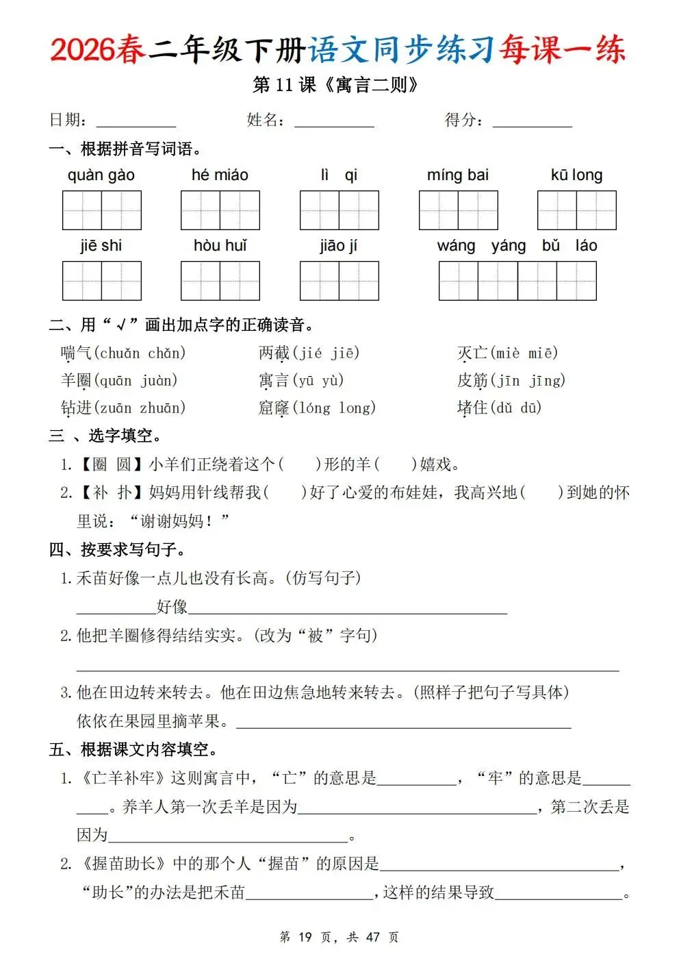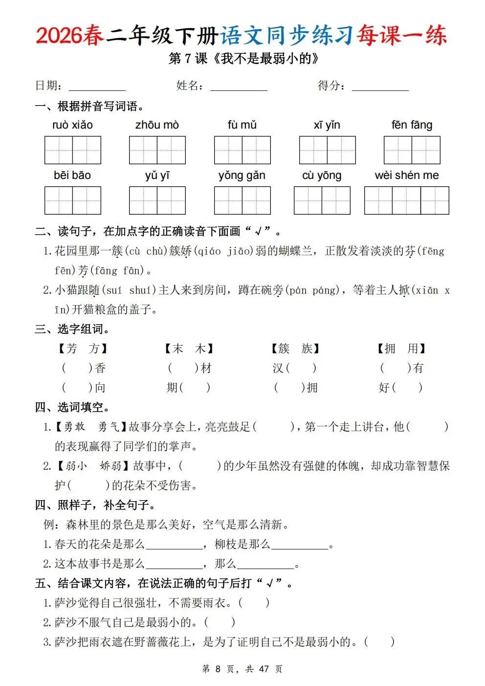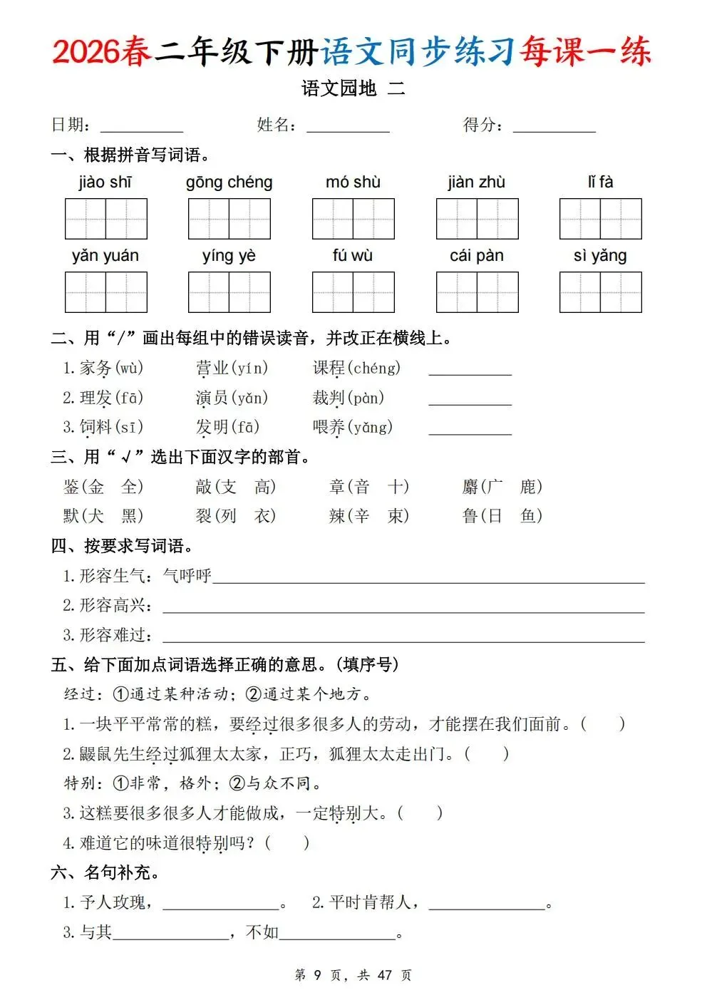 2026春人教部编版一年级下册语文《同步课本一课一练》电子版可打印!涵盖看拼音写词语、选正确读音、按课文填空等题型,一课一练巩固基础。建议老师家长收藏打印,让孩子练习使用。高清版本直接打印方便孩子复习总结!✍🏻欢迎转发到班级群,助力更多孩子学习进步!