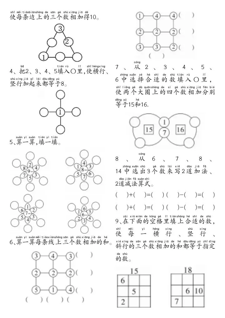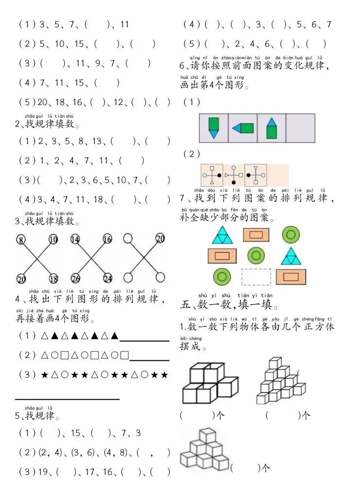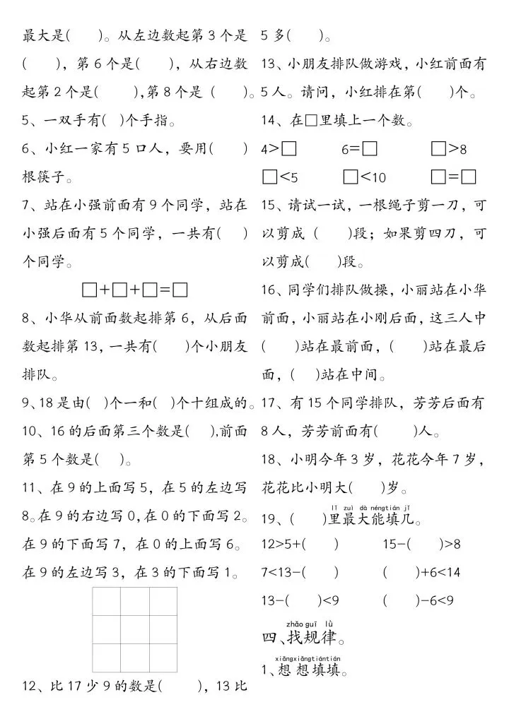 一年级下册数学思维练习题(完整电子版可打印)