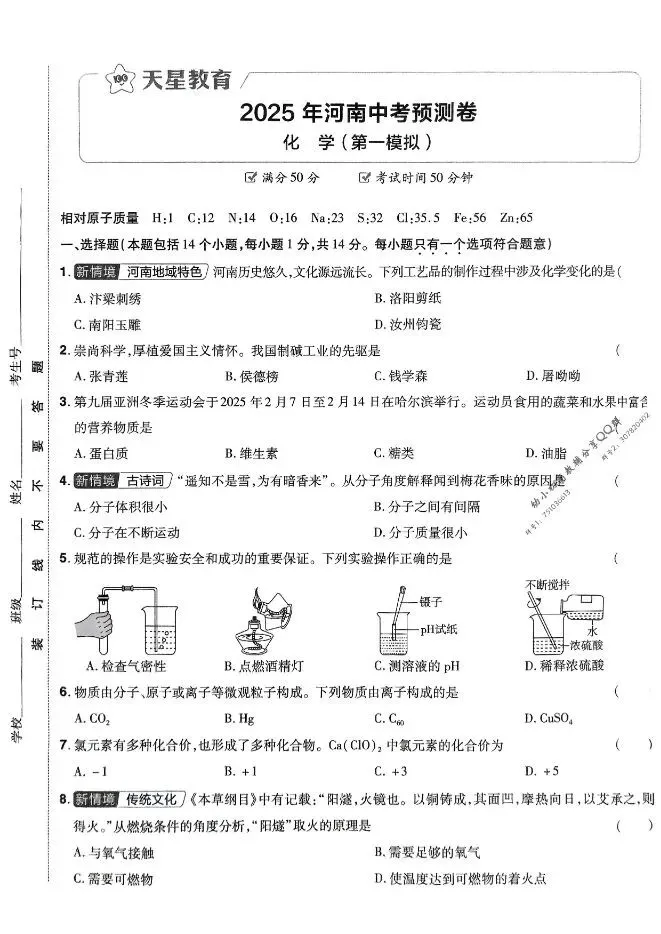 2025版中考化学预测卷|可下载打印 点击上方“语数英父母学堂”↑↑↑关注我 版面有限,不过多展示 需要直接拉至文末下载 完整电子打印版免费领取方式 ▲点击上方 语数英父母学堂 在公众号消息框发送: 5333,即可免费领取