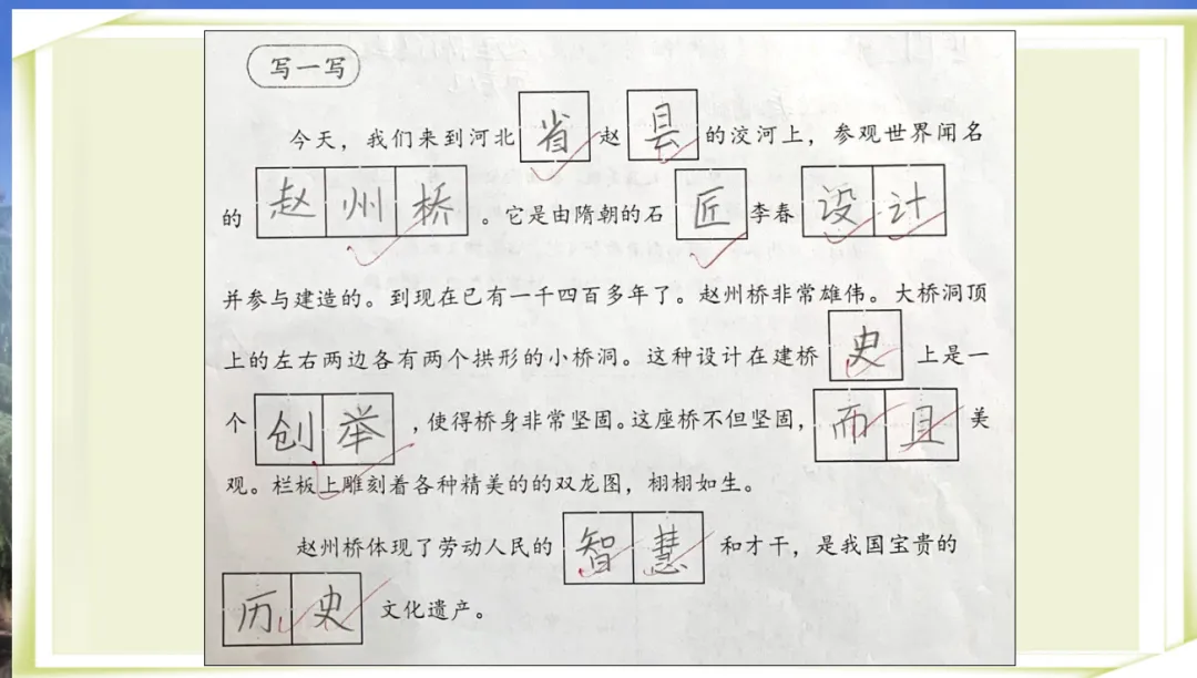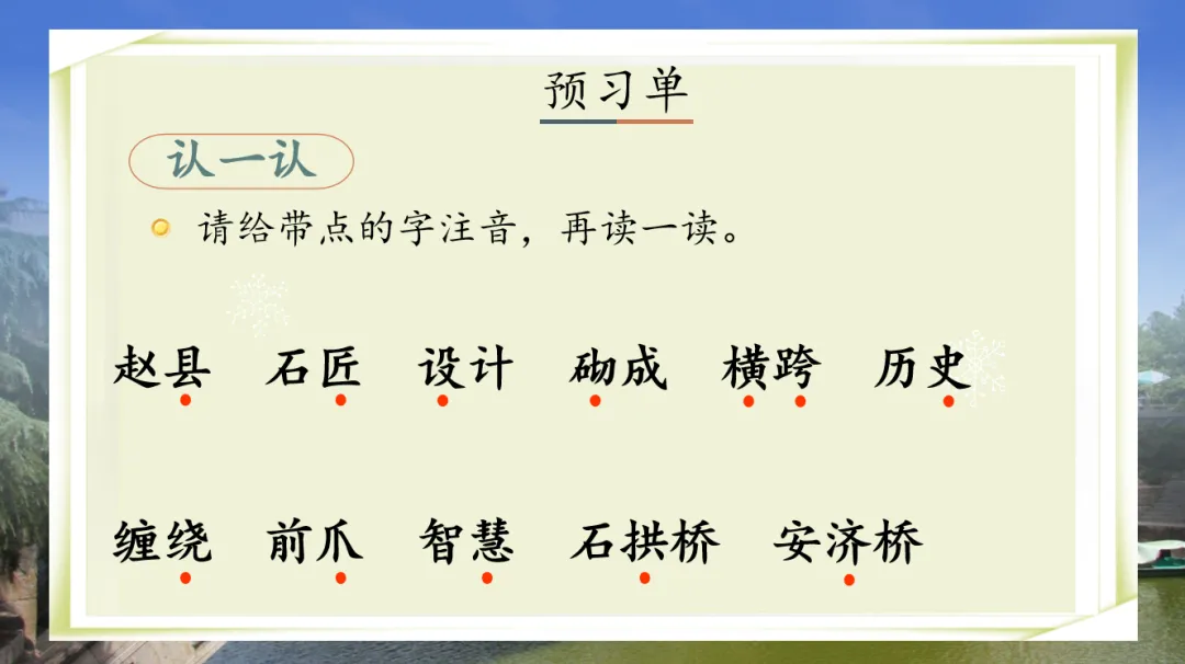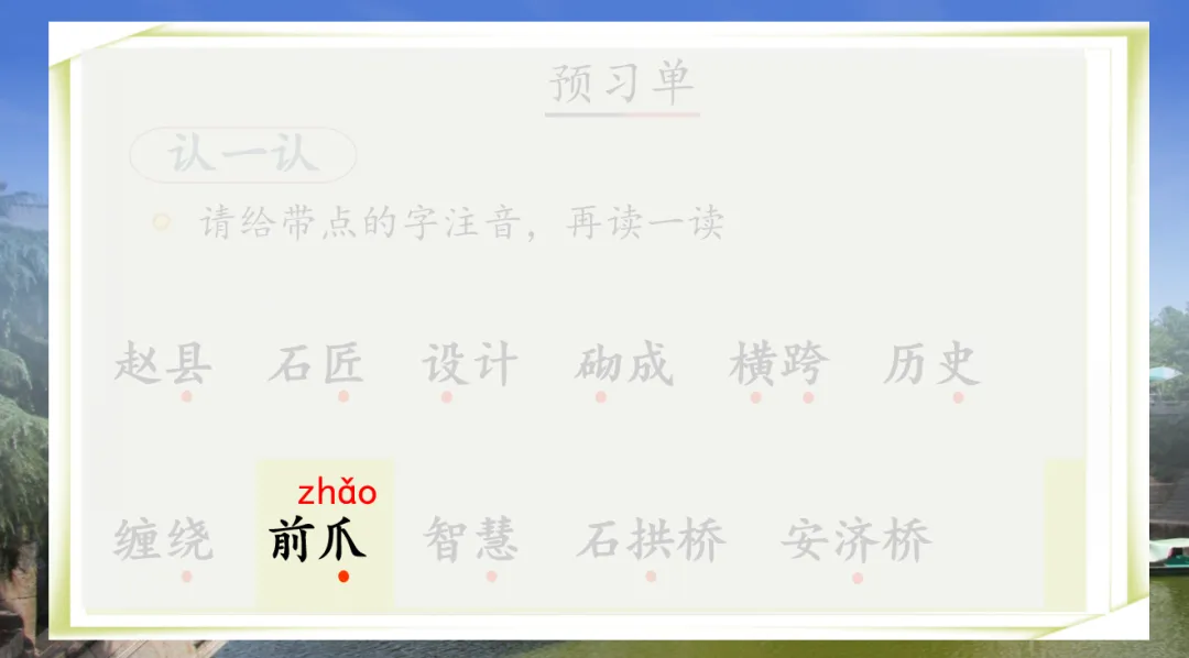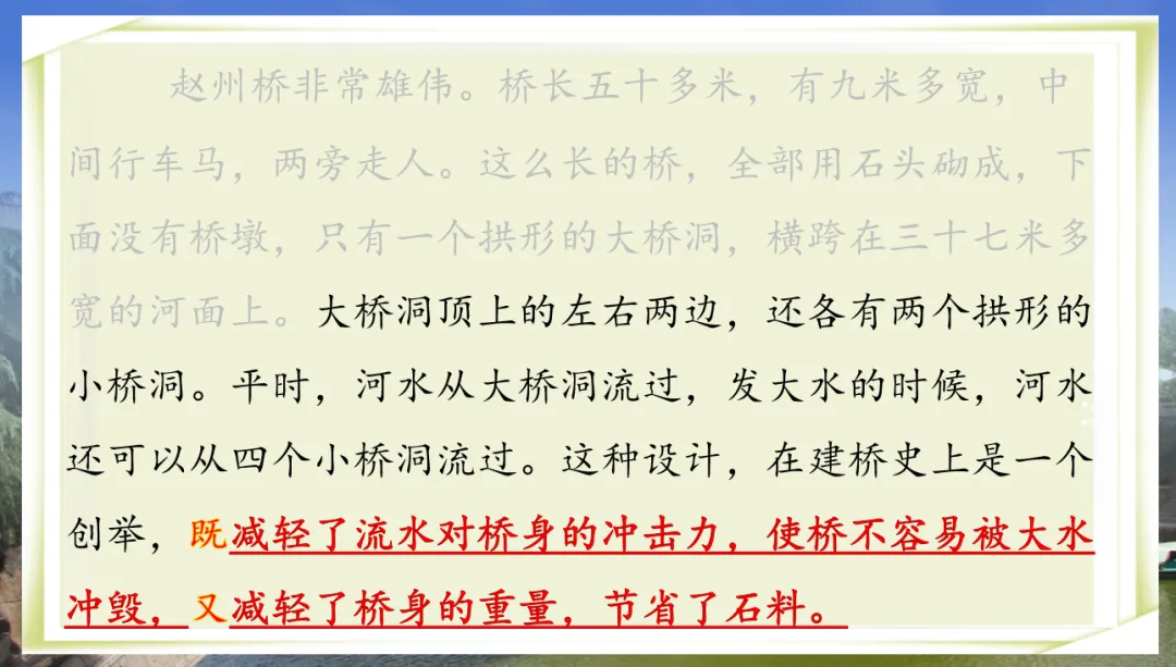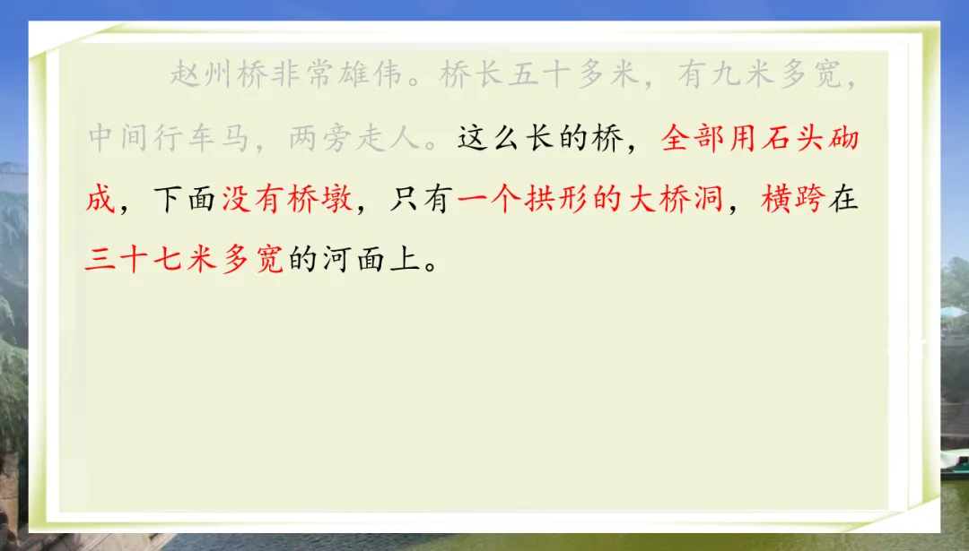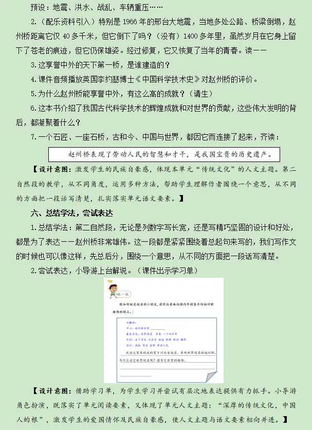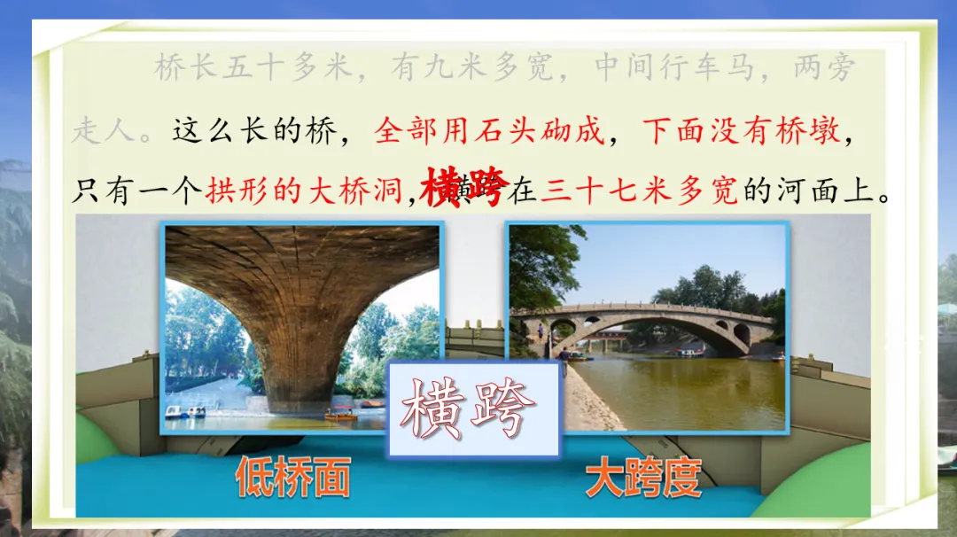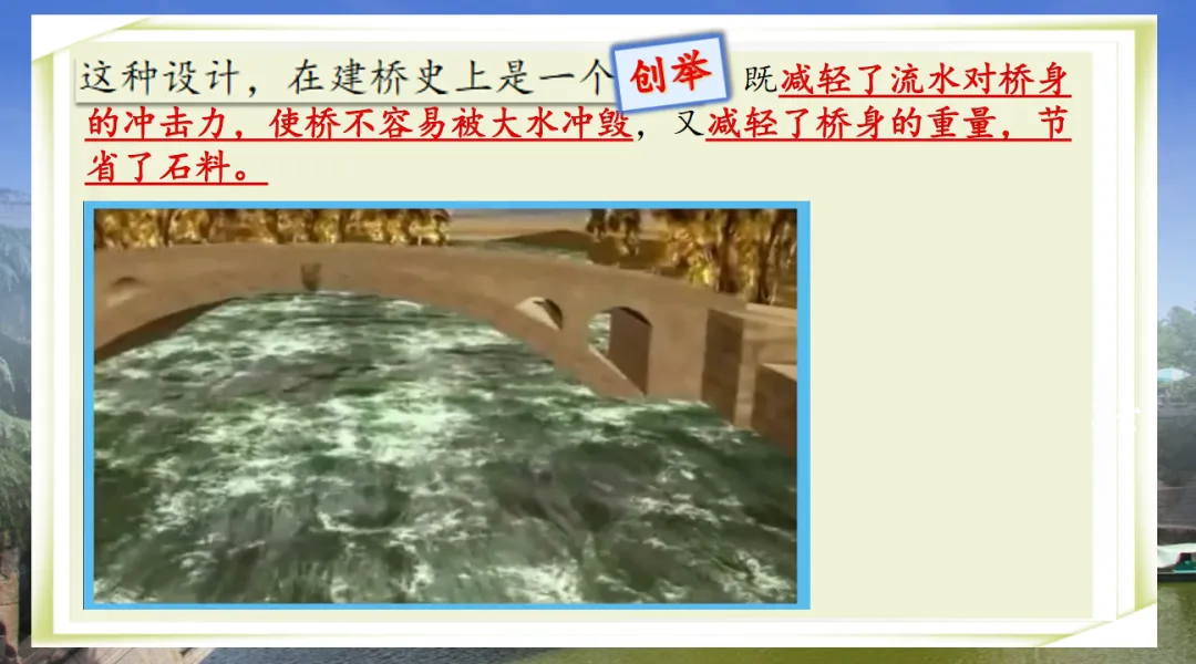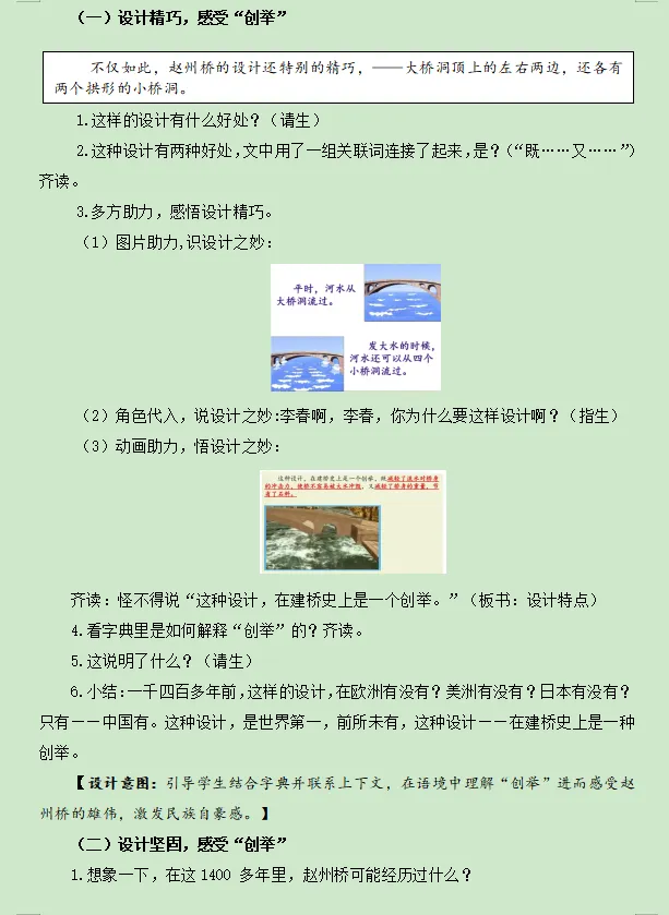 3.感受赵州桥是中国古代人民智慧的结晶,激发学生热爱祖国文化的思想感情。