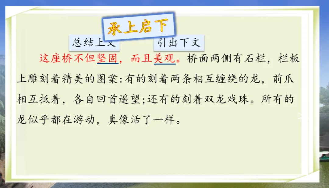 2.师小结:柳州是一座环江而建的城市,所以桥特别的重要。
