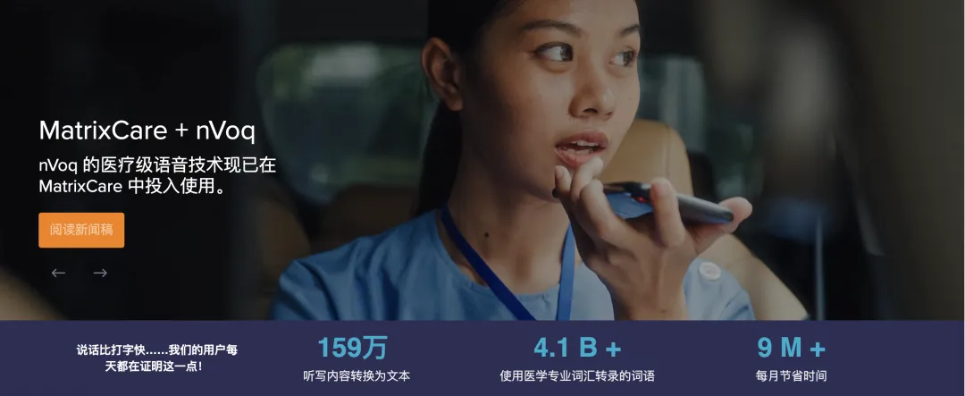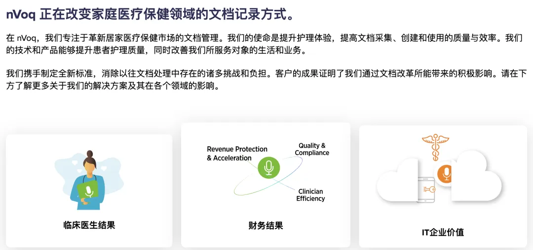 nVoq是一家为急性期后护理提供AI驱动临床文书解决方案的领军企业。其经过严谨医学训练的语音技术,现已成功接入知名电子健康记录(EHR)平台 MatrixCare,专门服务于家庭健康、临终关怀和专业护理机构。