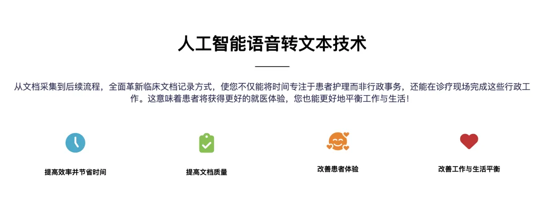 • 经验证的可靠性:拥有在复杂医疗环境语音识别及工作流程集成中,长达十余年的实际应用落地经验支撑。