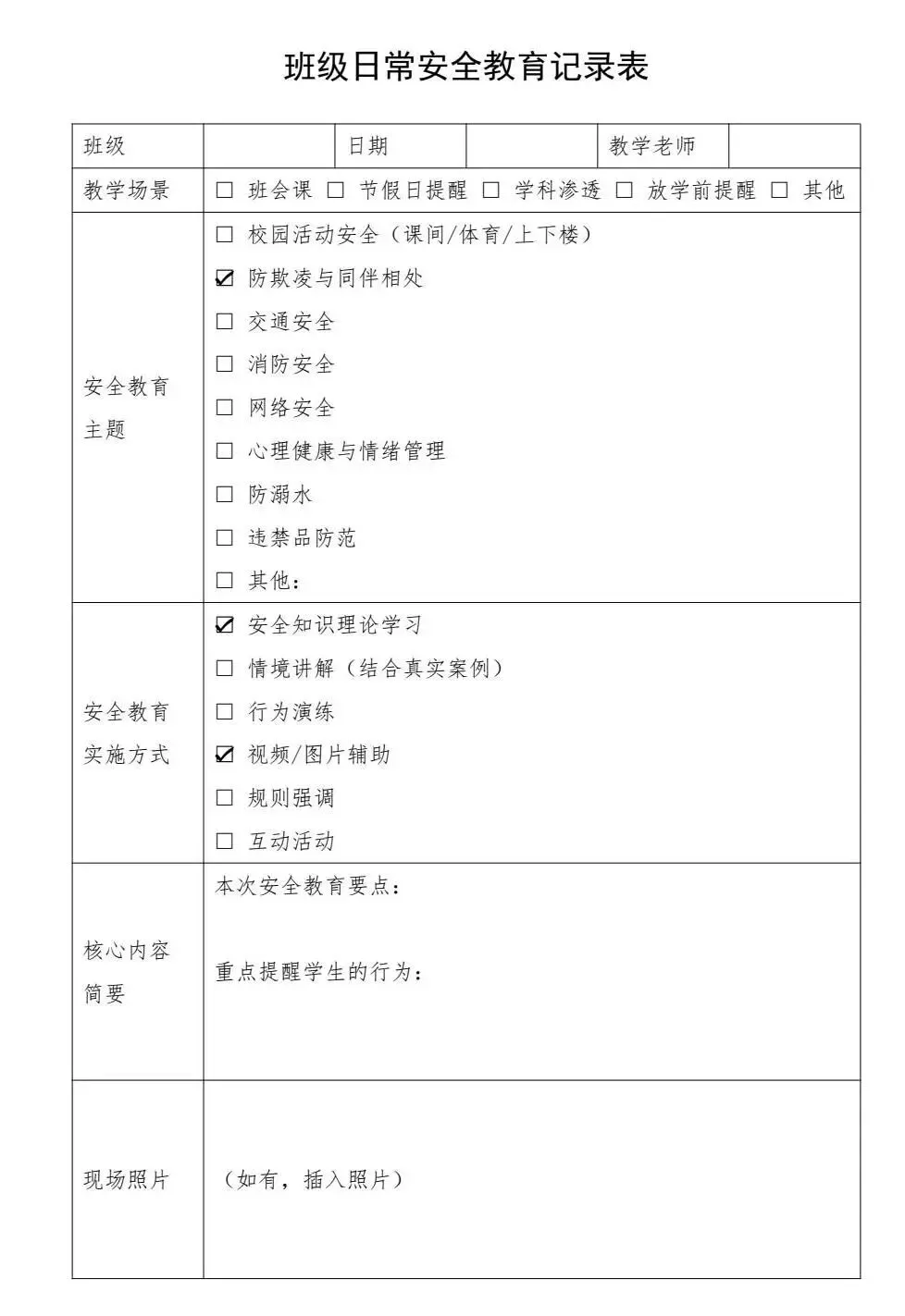 班级日常安全教育记录表(word)