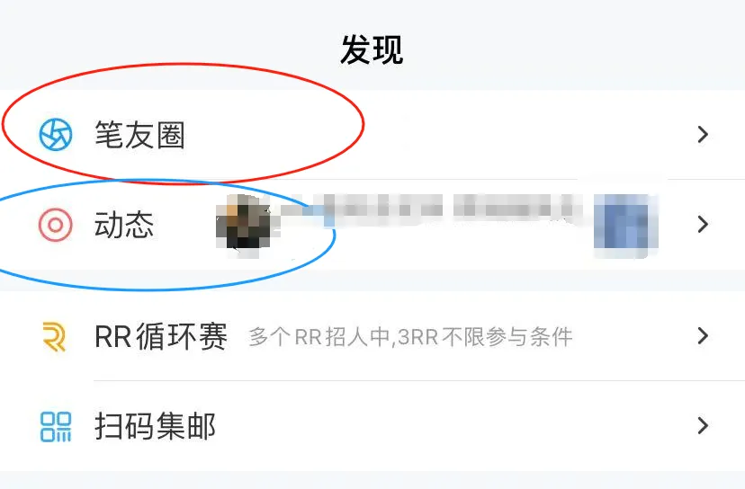 除此之外,在“发现”—“动态” 这里还可以看到笔友们分享的日常,“笔友圈”则可以比作微信朋友圈
