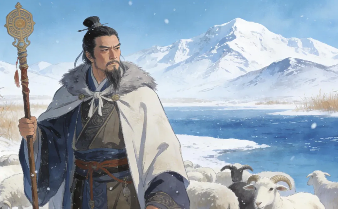 苏武:取自苏武牧羊的典故。西汉苏武出使匈奴,被扣留北海牧羊十九年,持节不屈、孤苦守节,是坚贞、孤高、羁旅、沉郁的文化符号。