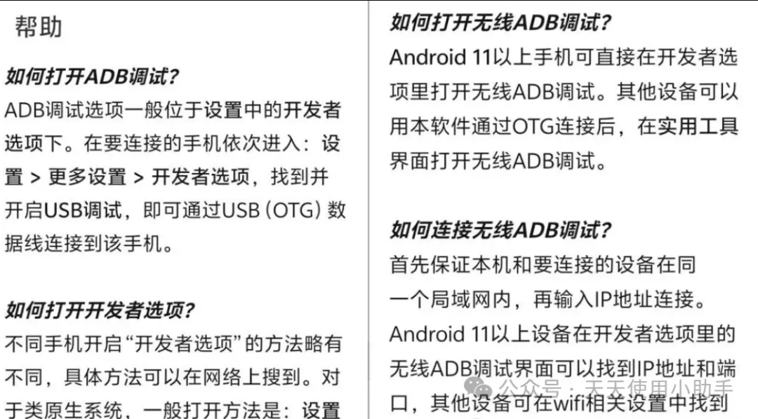 ②提前打开电视的ADB调试功能,具体步骤如下图所示。