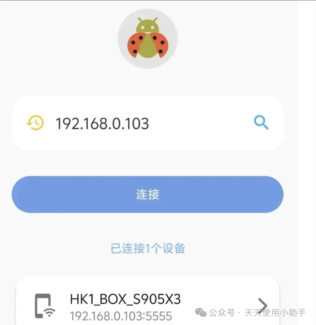 ③确保电视和手机在同一个WiFi下,点搜索按钮,会把电视的IP搜出来,点击后再点连接如下两图。如果搜索不到,就需要自己到电视设置里找到其IP,手动输入。