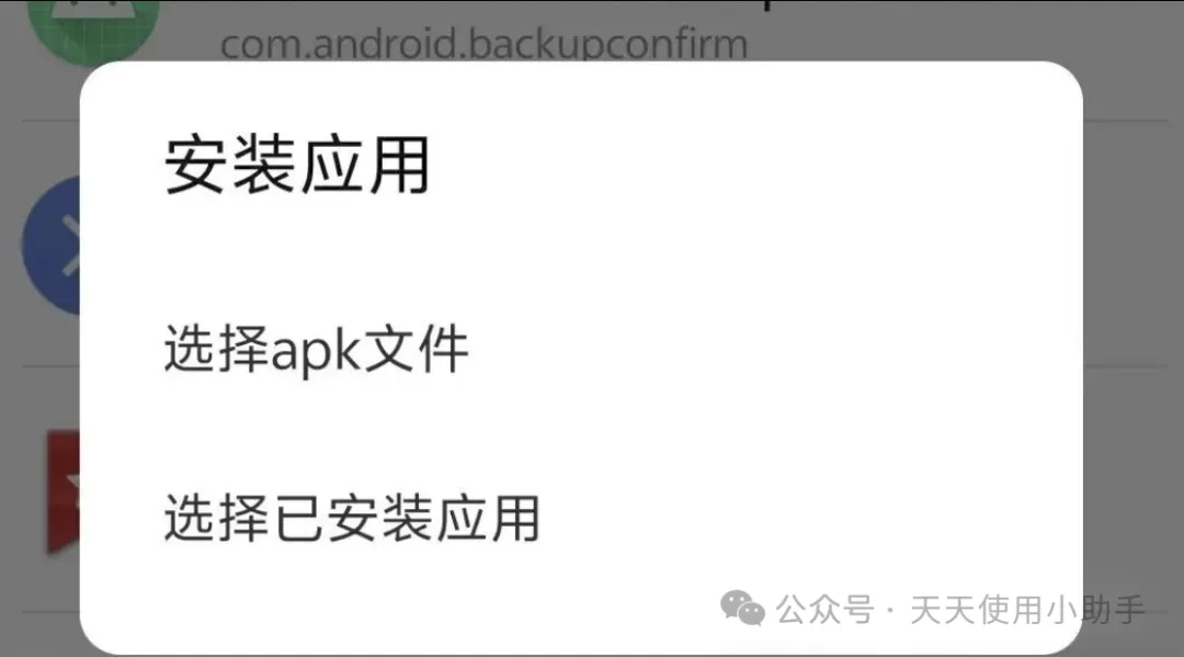 点+,会让你选择通过软件安装包安装,还是你手机里已安装好的app。