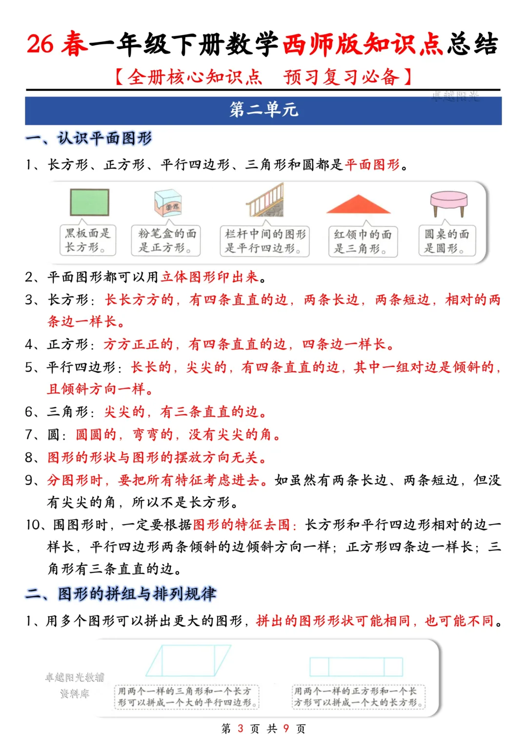 一年级下册数学西师版知识点总结(电子版可打印) 今天给大家分享:一年级下册数学西师版知识点总结。 需要就打印出来,让孩子跟着复习,考试一定没问题。 以下为部分内容截图,具体看完整PDF文件,可以下拉到文末获取。 下载地址: https://pan.quark.cn/s/eb9748f6e51c 复制以上链接,打开夸克网盘,即可获取文档。 也可以添加以下微信,回复“小学资料”,直接获取pdf,还可以获取过往资料包。 欢迎点赞和关注。