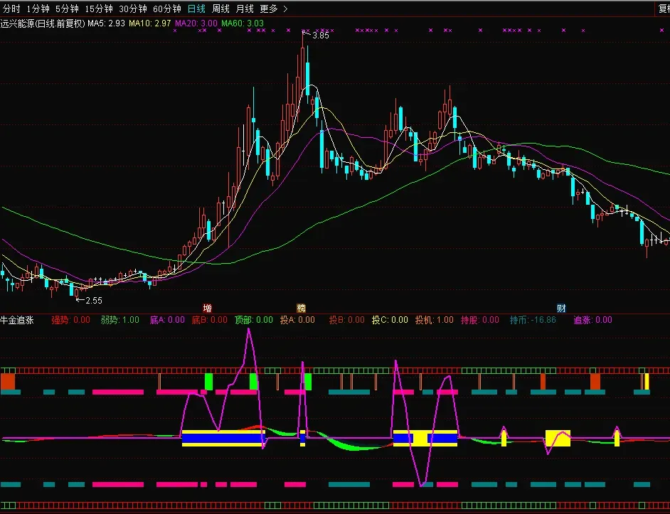 DRAWTEXT(买入,1.5,’黑马必抓’),COLOR00FFFF;