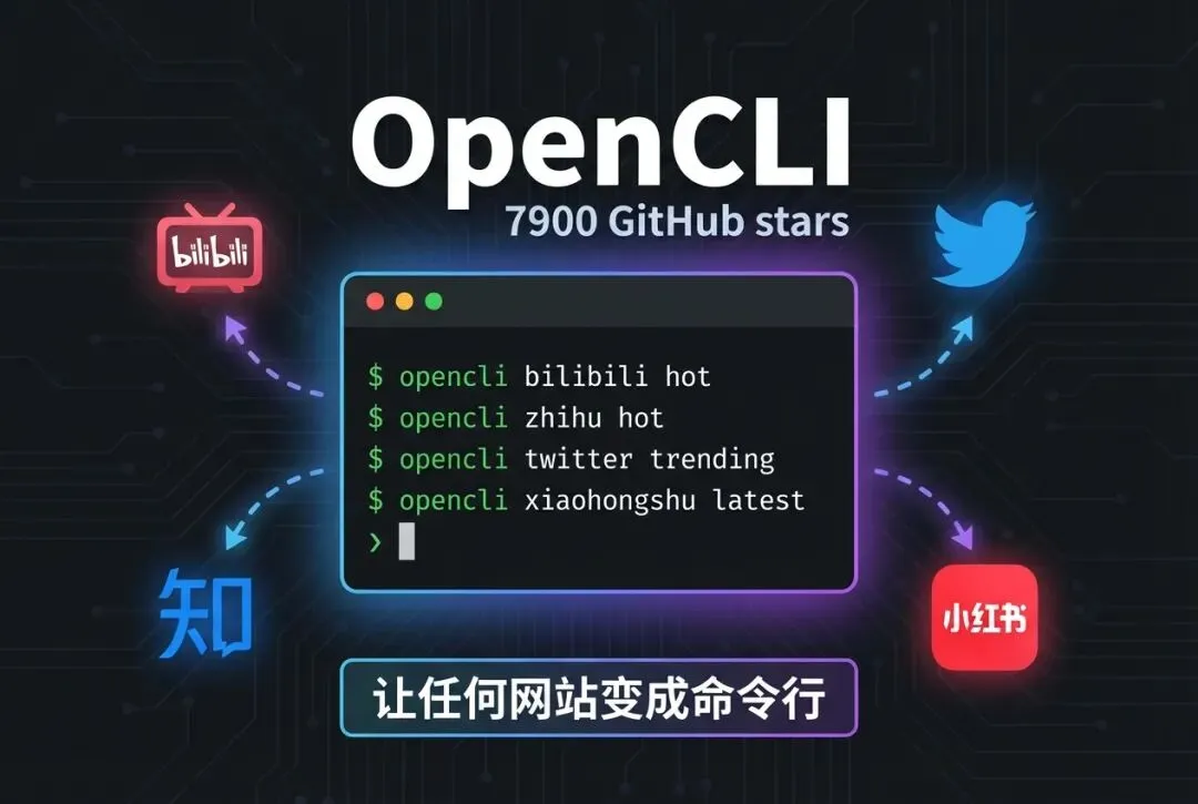 OpenCLI 是一个开源工具,核心理念是:把任何网站、Electron 应用、本地 CLI 工具,变成一个标准化的命令行接口,让 AI Agent 可以直接调用。