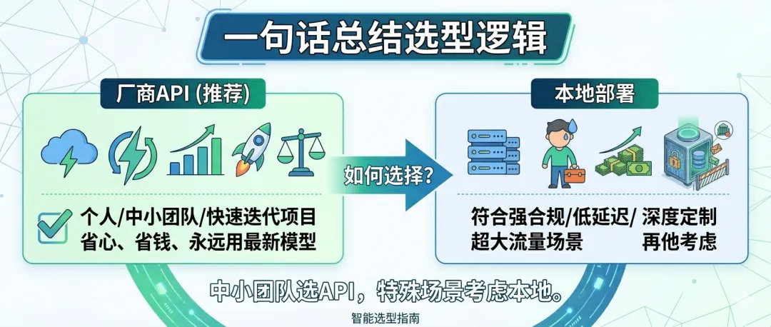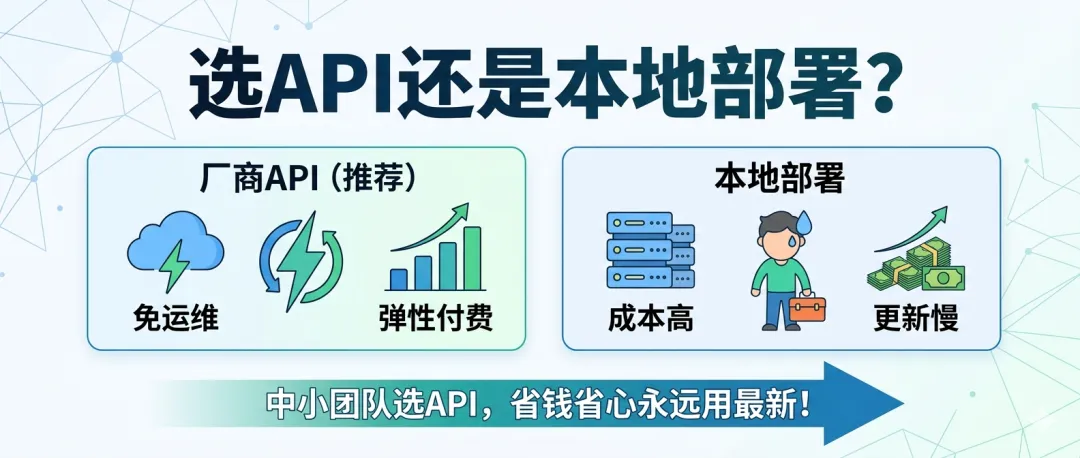 👉 个人/中小团队/快速迭代项目:优先选厂商API,省心、省钱、永远用最新模型