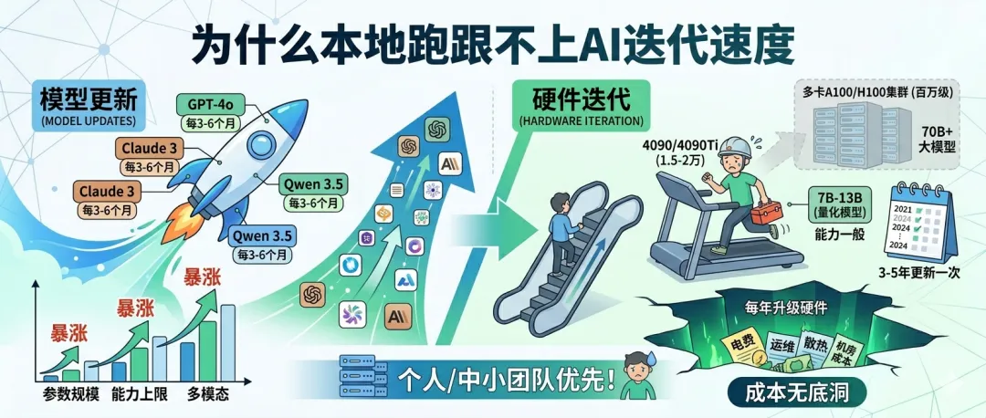 – 普通显卡/服务器通常3-5年才会更换一次,硬件寿命完全跟不上模型迭代的节奏