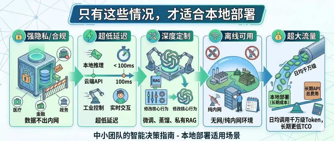👉 符合强合规/低延迟/深度定制/超大流量场景:再考虑本地部署