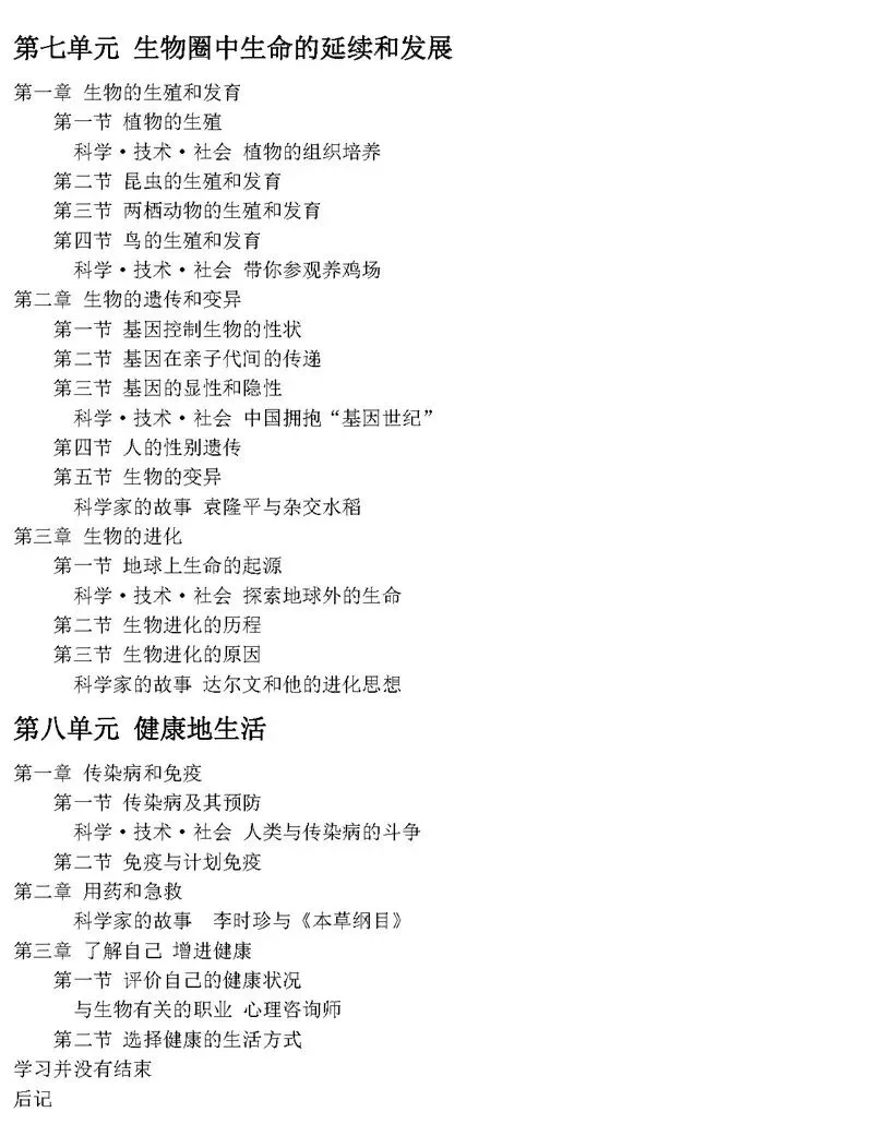 人教版八年级生物(下册)教材高清电子版 ▍课本来源:人民教育出版社 ▍免责声明:所有图文、音视频仅供学习交流使用,版权归原作者所有,除非无法确认,我们都会标明作者及出处,如有侵权烦请告知,我们会立即删除并表示歉意