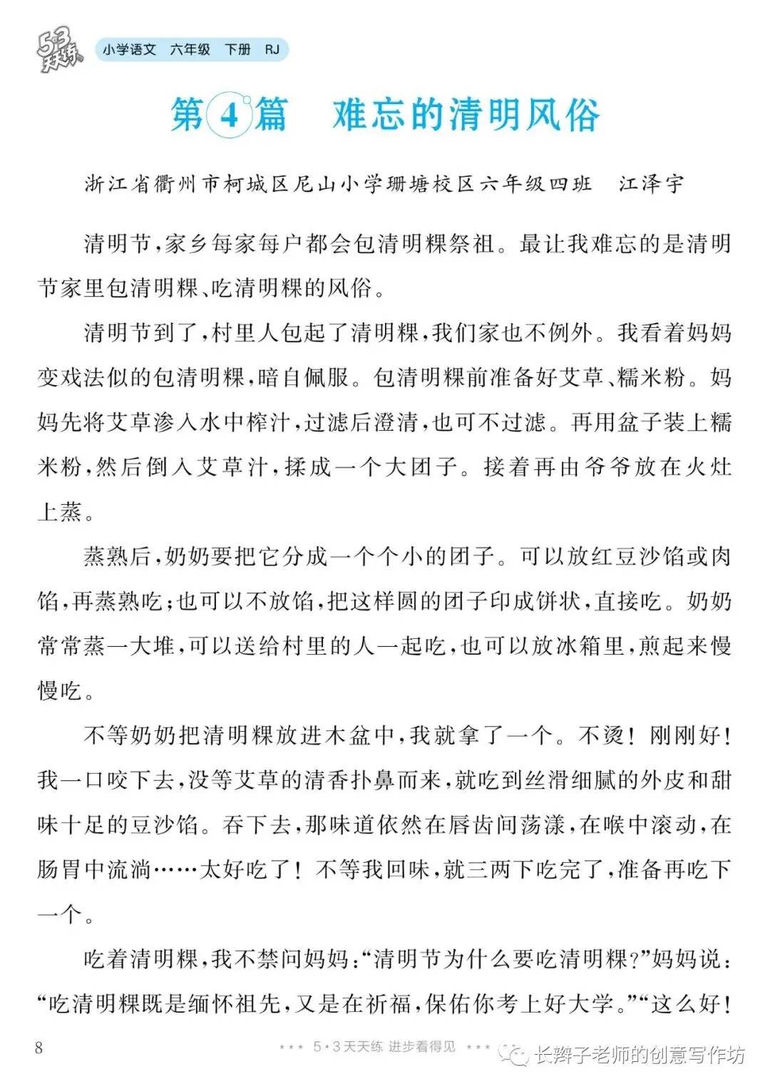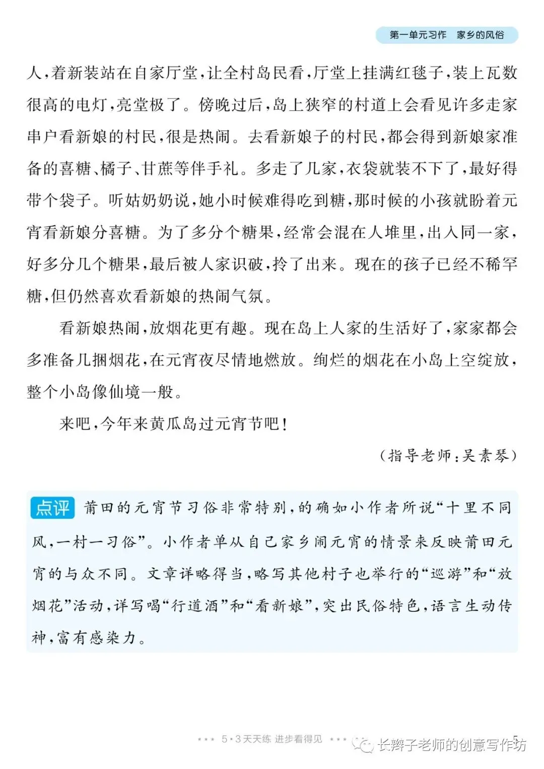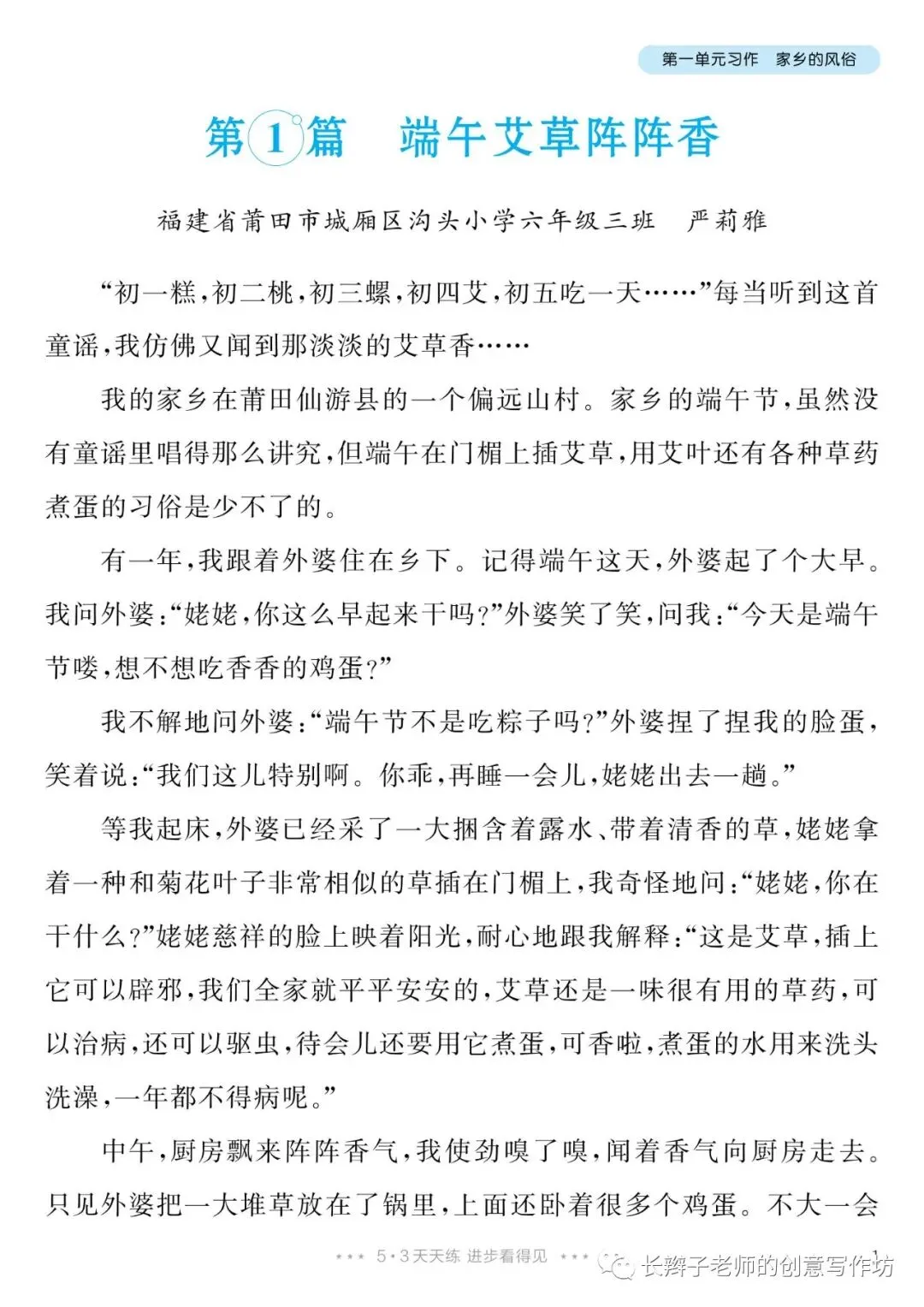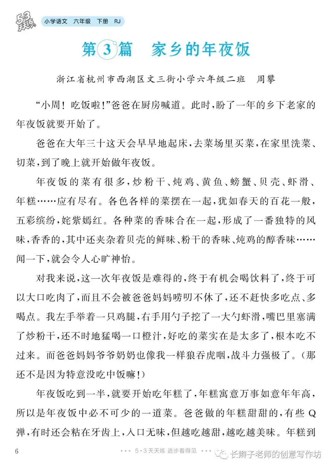 六下单元习作范文