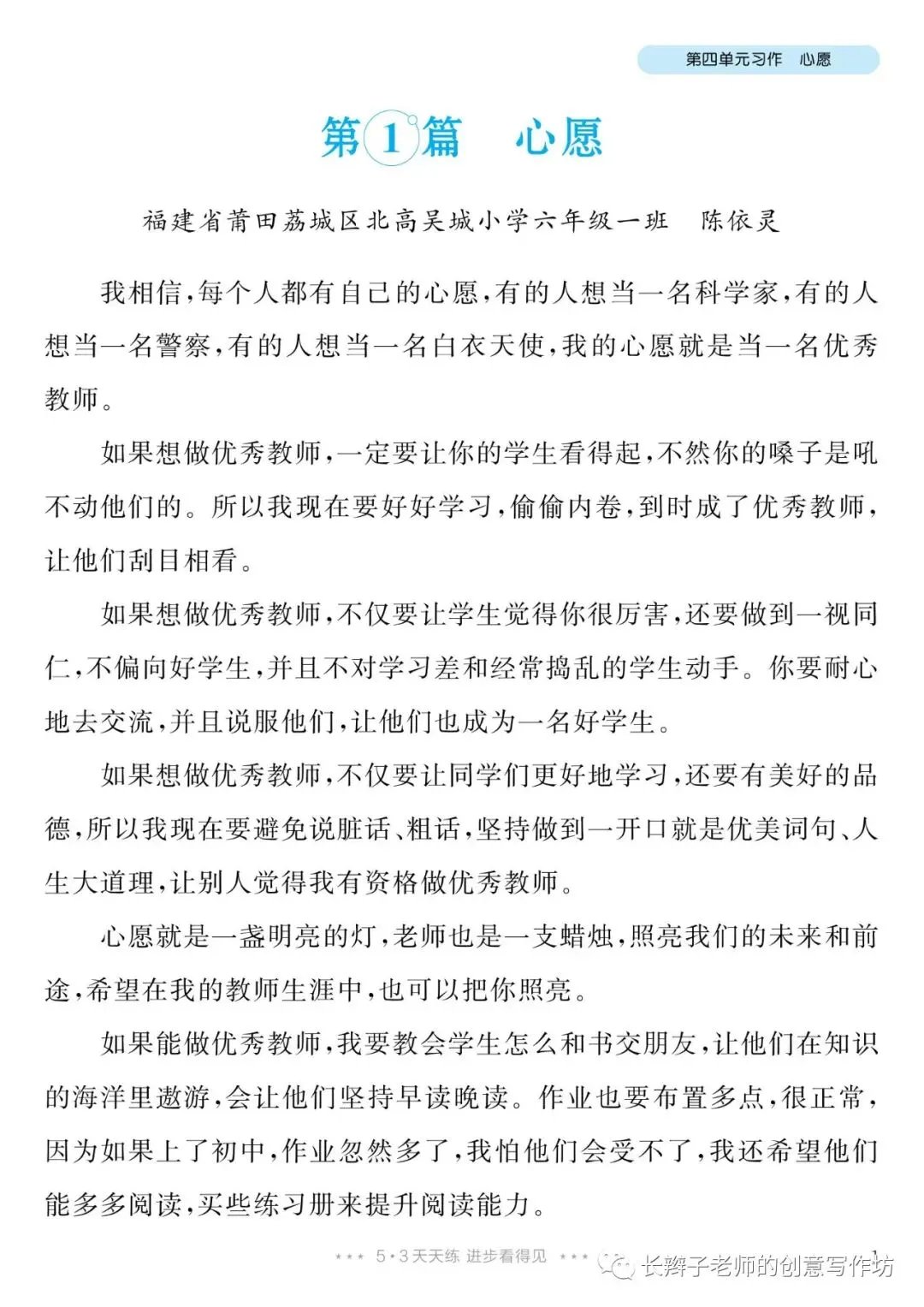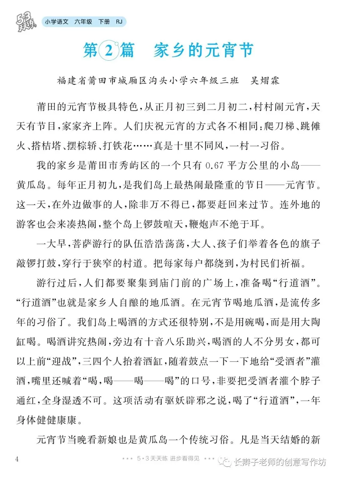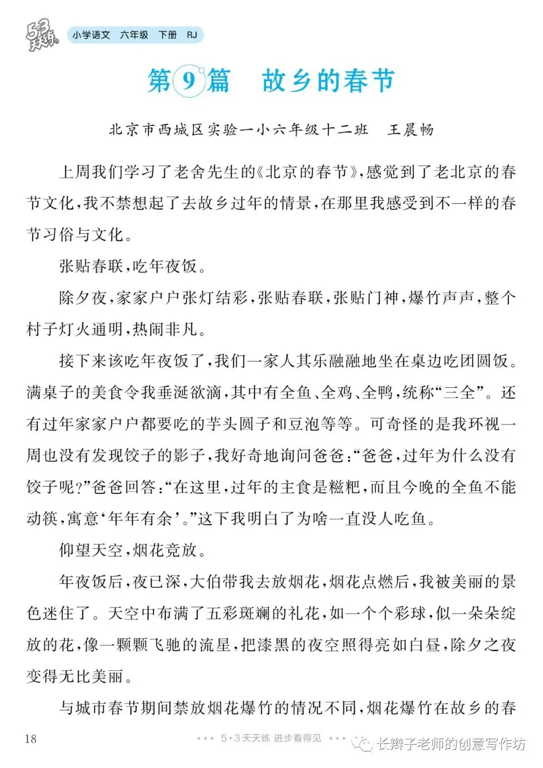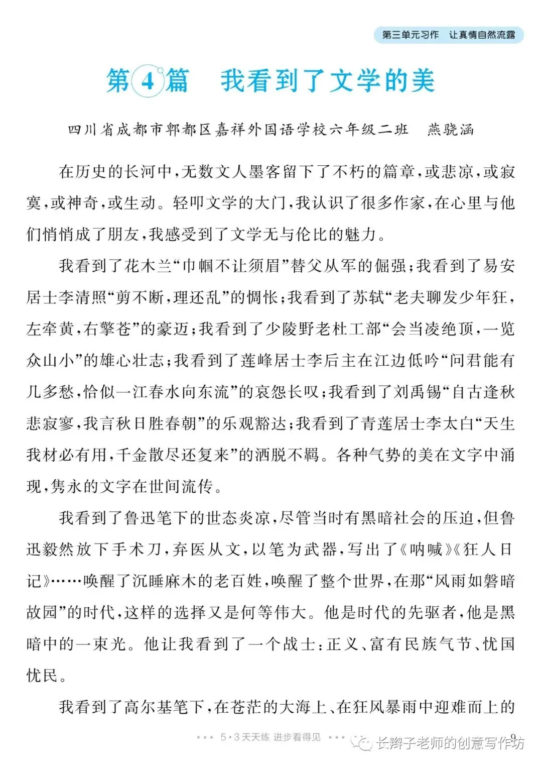 六下单元习作范文