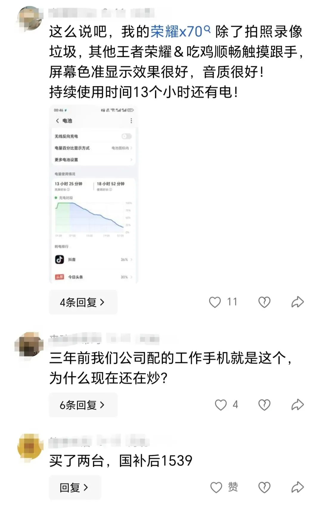 最后说一下短板,荣耀X70搭载的处理器是骁龙6 Gen4,性能上接近骁龙7 Gen3,属于入门中端芯片,完全可以满足日常生活使用,也可以流畅运《王者荣耀》等大型游戏,但是重度游戏党慎入。