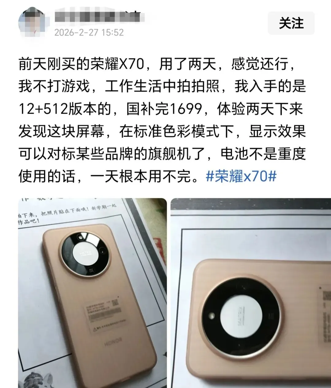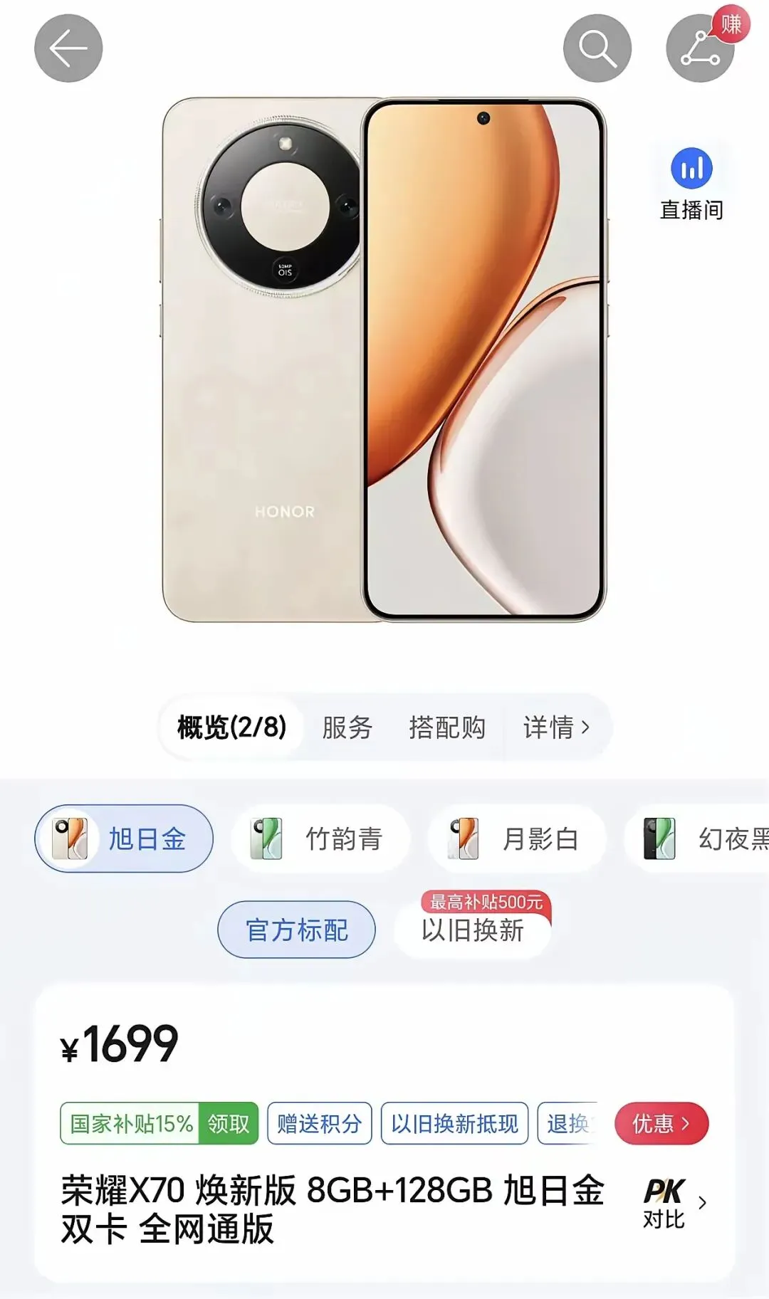 面对如此高的销量,荣耀商城最近又上架了荣耀X70的焕新版,新增了旭日金的机身配色,其它配置方面没有变化,但是价格上涨了300元,虽然不情愿,但是依然很香。
