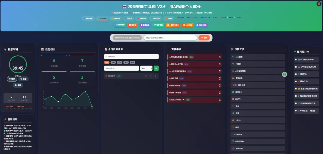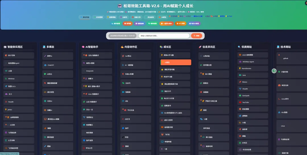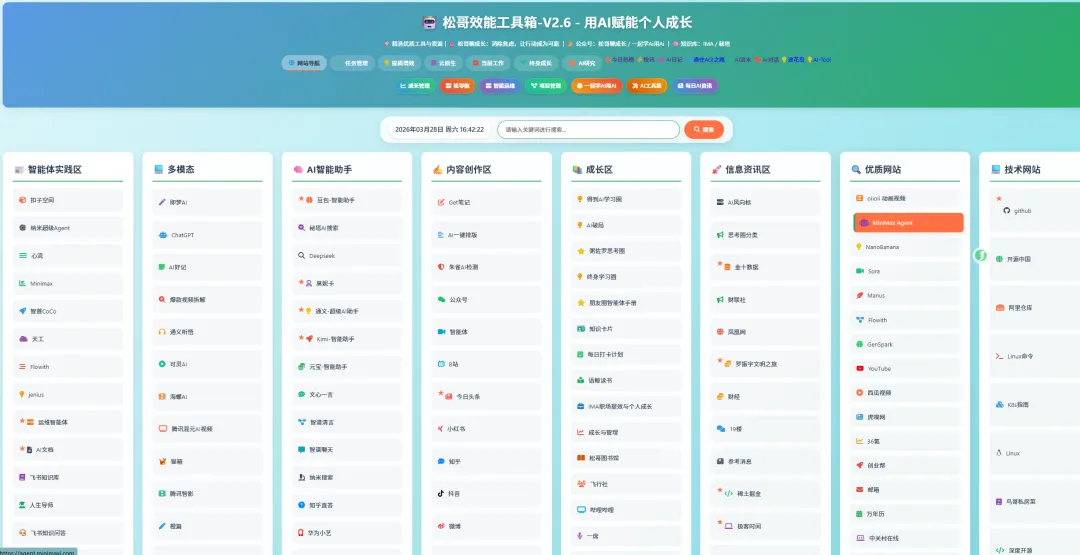 今天看了下社区消息,有朋友说松哥你的工具真好用了,治好了我找工具、学AI的焦虑。的确,现在各个学习网站、办公网站、提效网站、AI学习网站太多了,我之前也是经常记不住,各种收藏,换个电脑就都没有了。