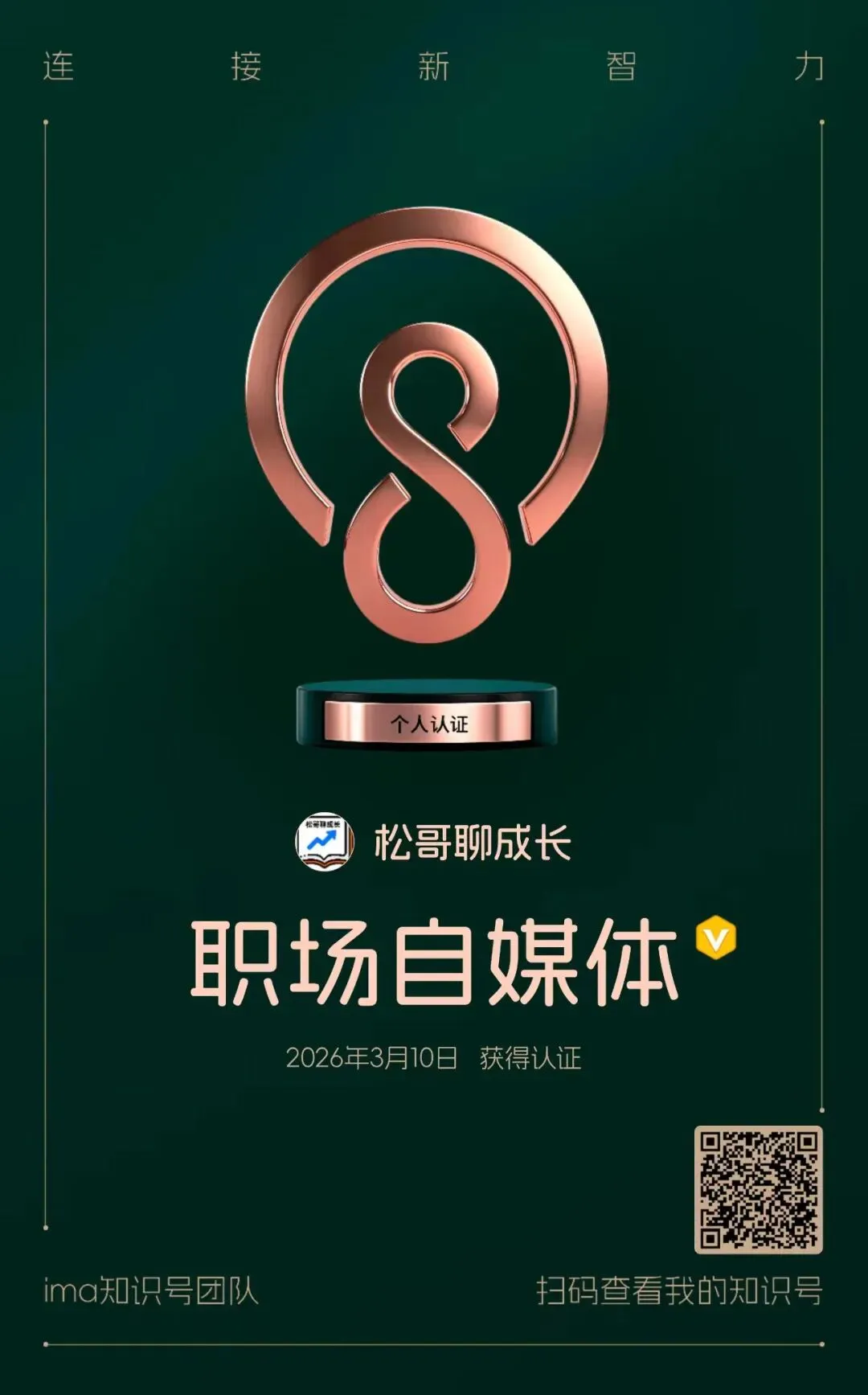 我是松哥聊成长,用AI赋能个人成长,为你解决职场效能与个人成长管理与学习,提供可落地的体系方法,陪伴你每一次小步迭代。用14年理工思维与实战经验,助你将“知道”变为“做到”。