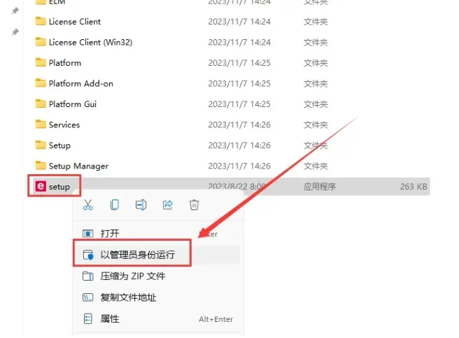 打开 Setup 文件夹,选择 setup 安装程序,右键以管理员身份运行。