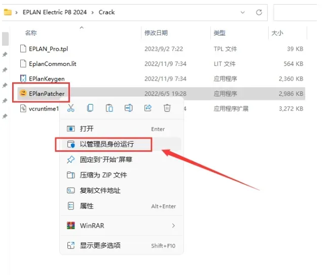 选择 EPlanPatcher,右键以管理员身份运行。