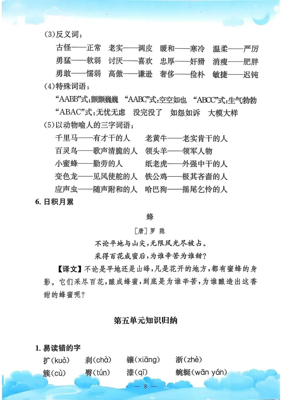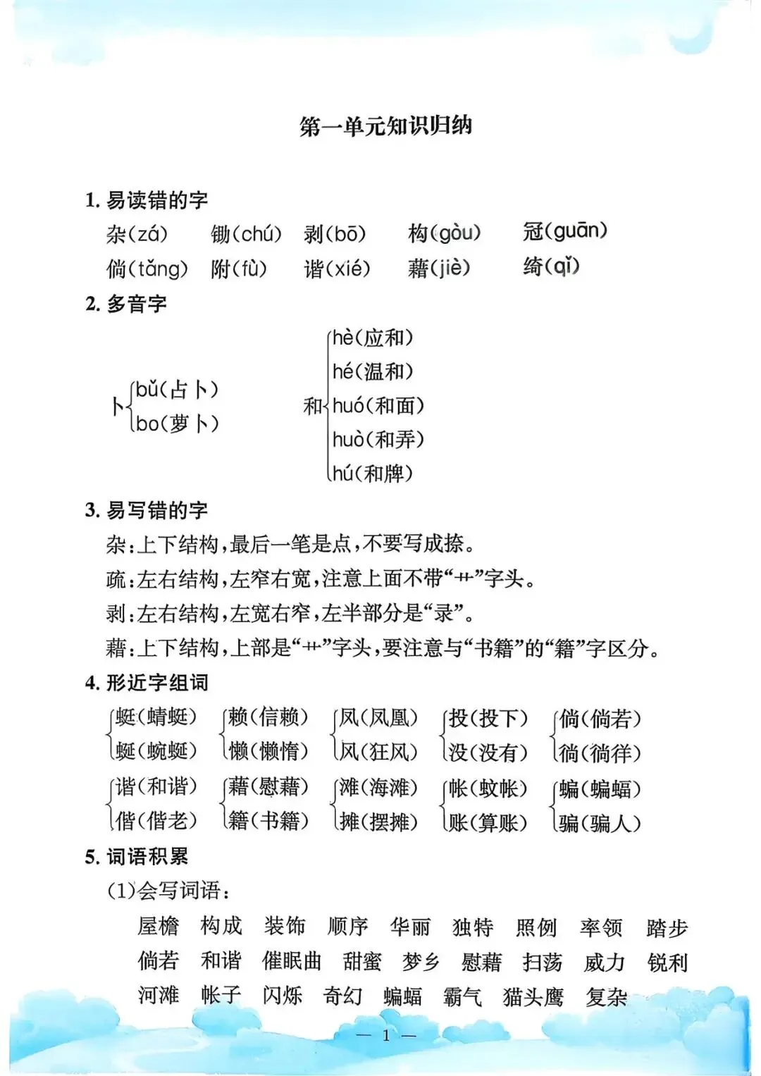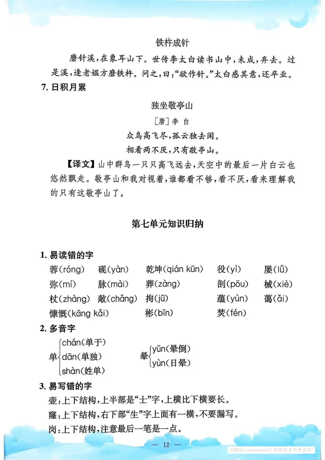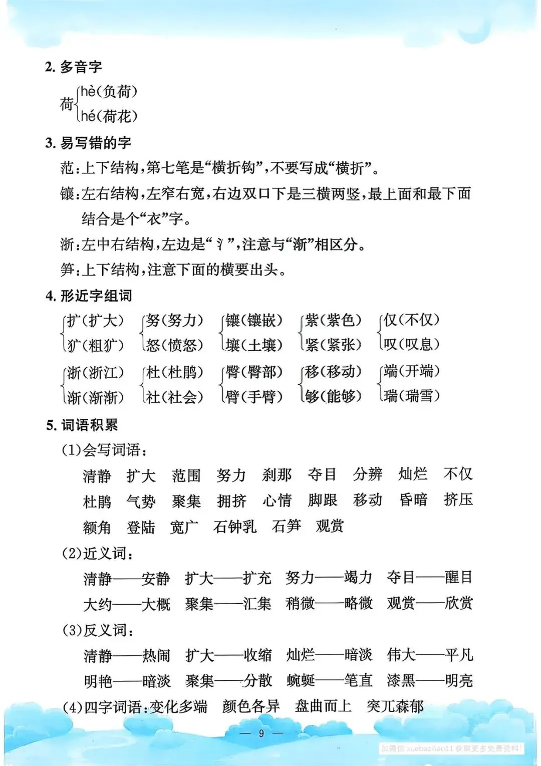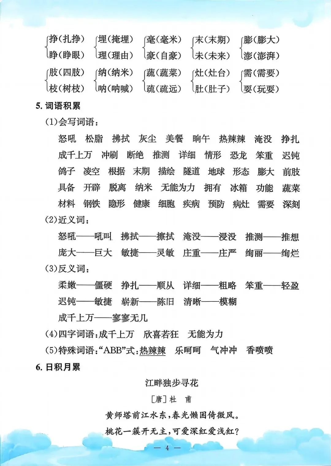 四年级下册语文《单元知识梳理》(领高清PDF打印版)