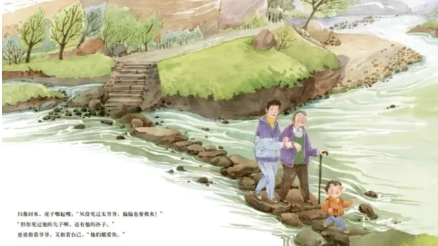 爸爸指着爷爷,又看着自己。“他们都爱你。”