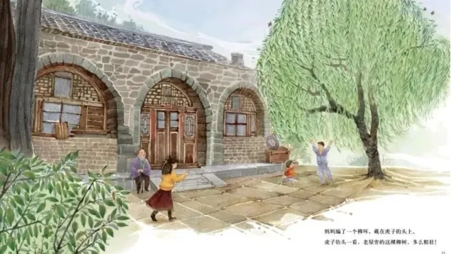 虎子抬头一看,老屋旁的这棵柳树,多么粗壮!