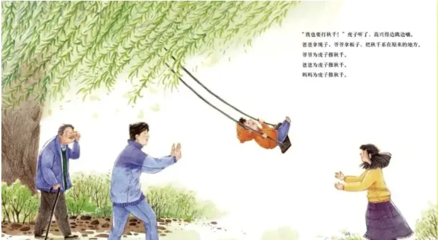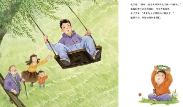 虎子又说:“我来为太爷爷的孙子推秋千。”